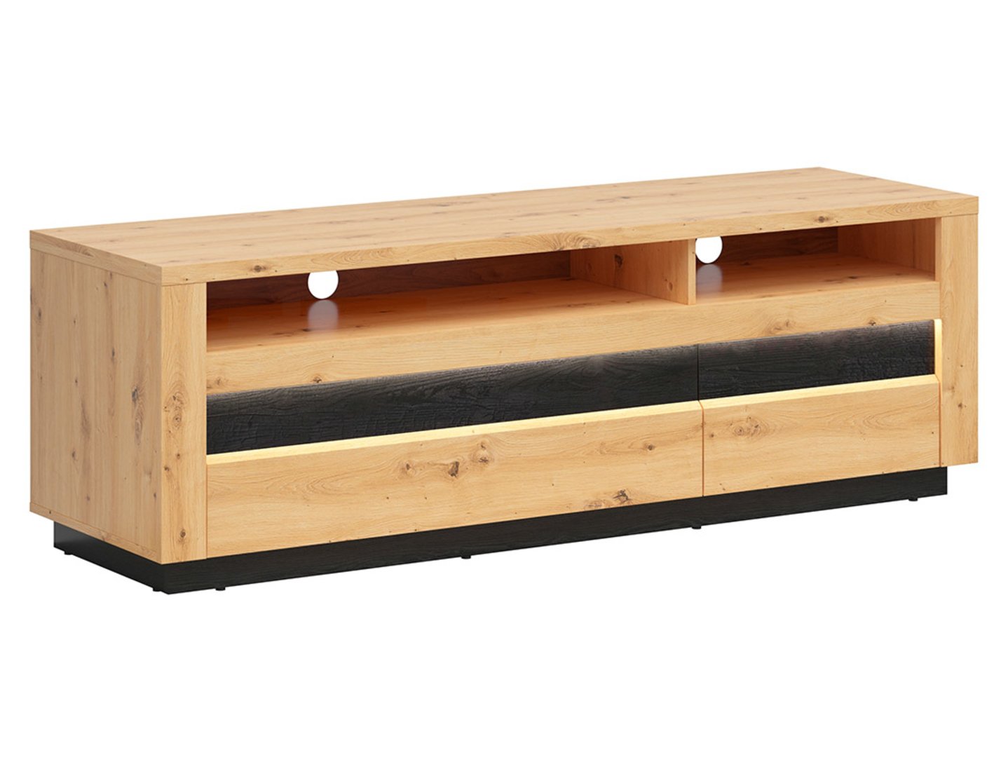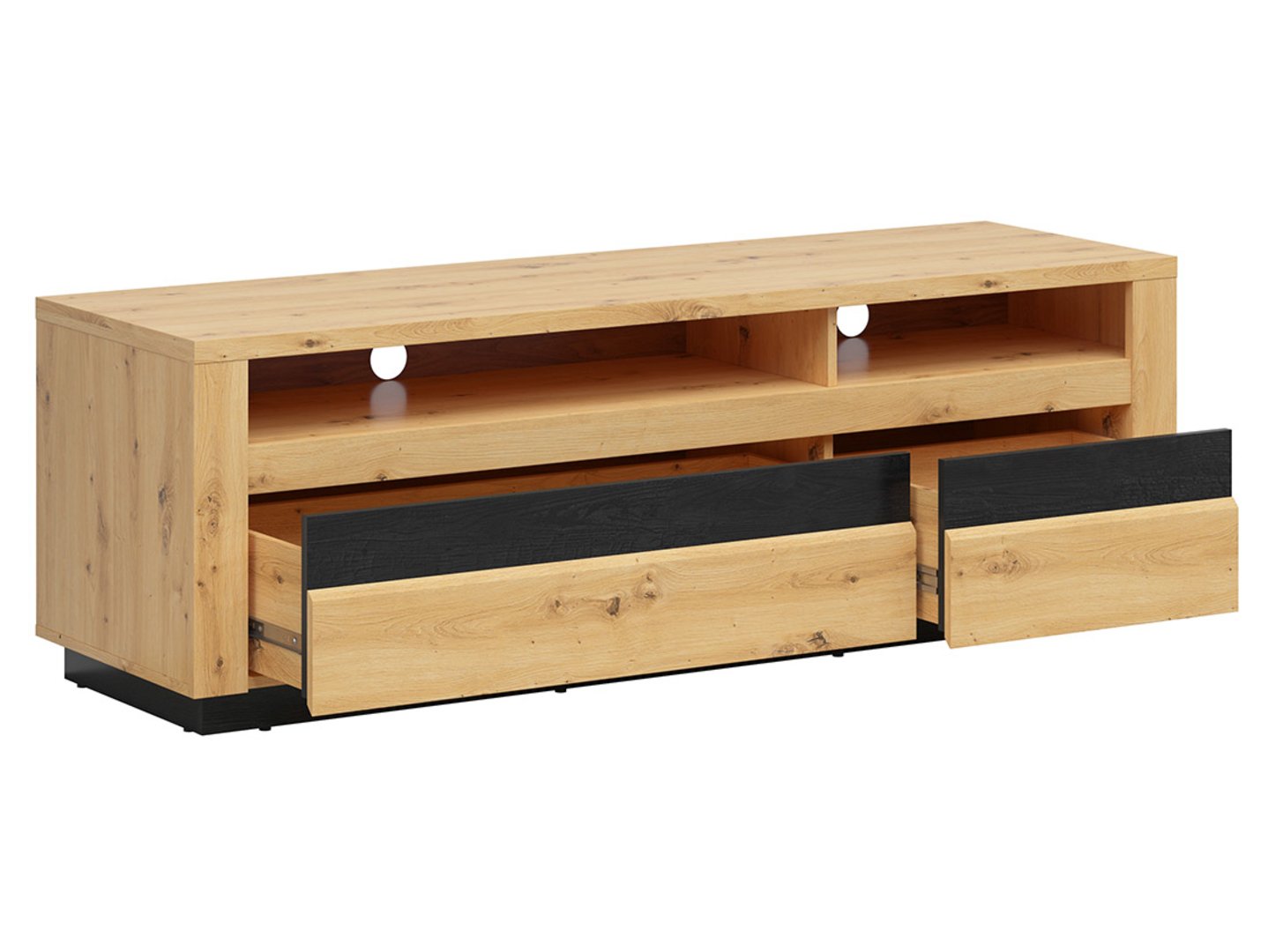 TV spintelė su dviem stalčiais OSTIA 161 cm, dirbtinio ąžuolo spalvos/blizgios juodos spalvos