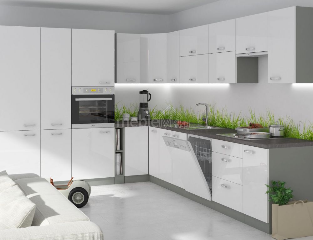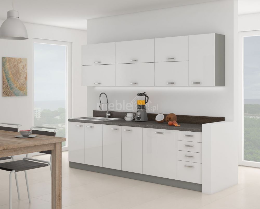 Paprastos formos, lengvas dizainas ir blizgūs PVC fasadai – tai šio komplekto privalumai. Komplektas idealiai tinka bet kuriai moderniu stiliumi dekoruotai virtuvei.