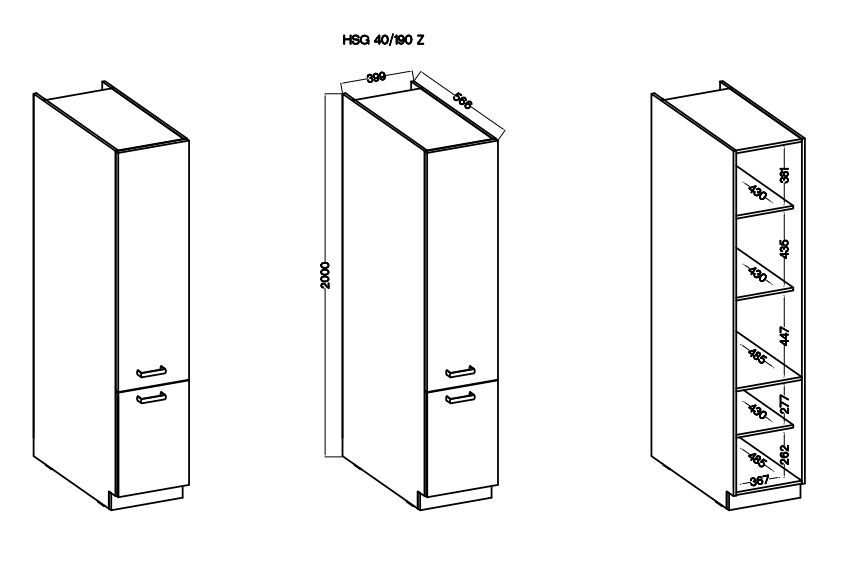 40 cm Omega 40 HSG-190 sandėliuko spintelė su vidinėmis lentynomis.