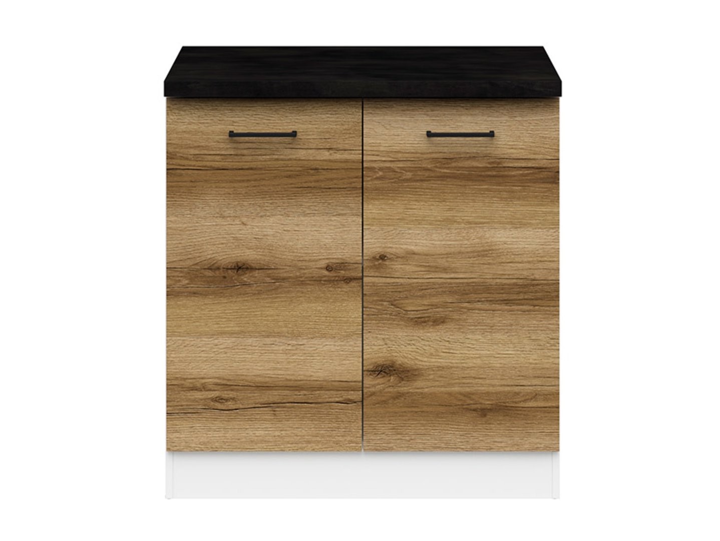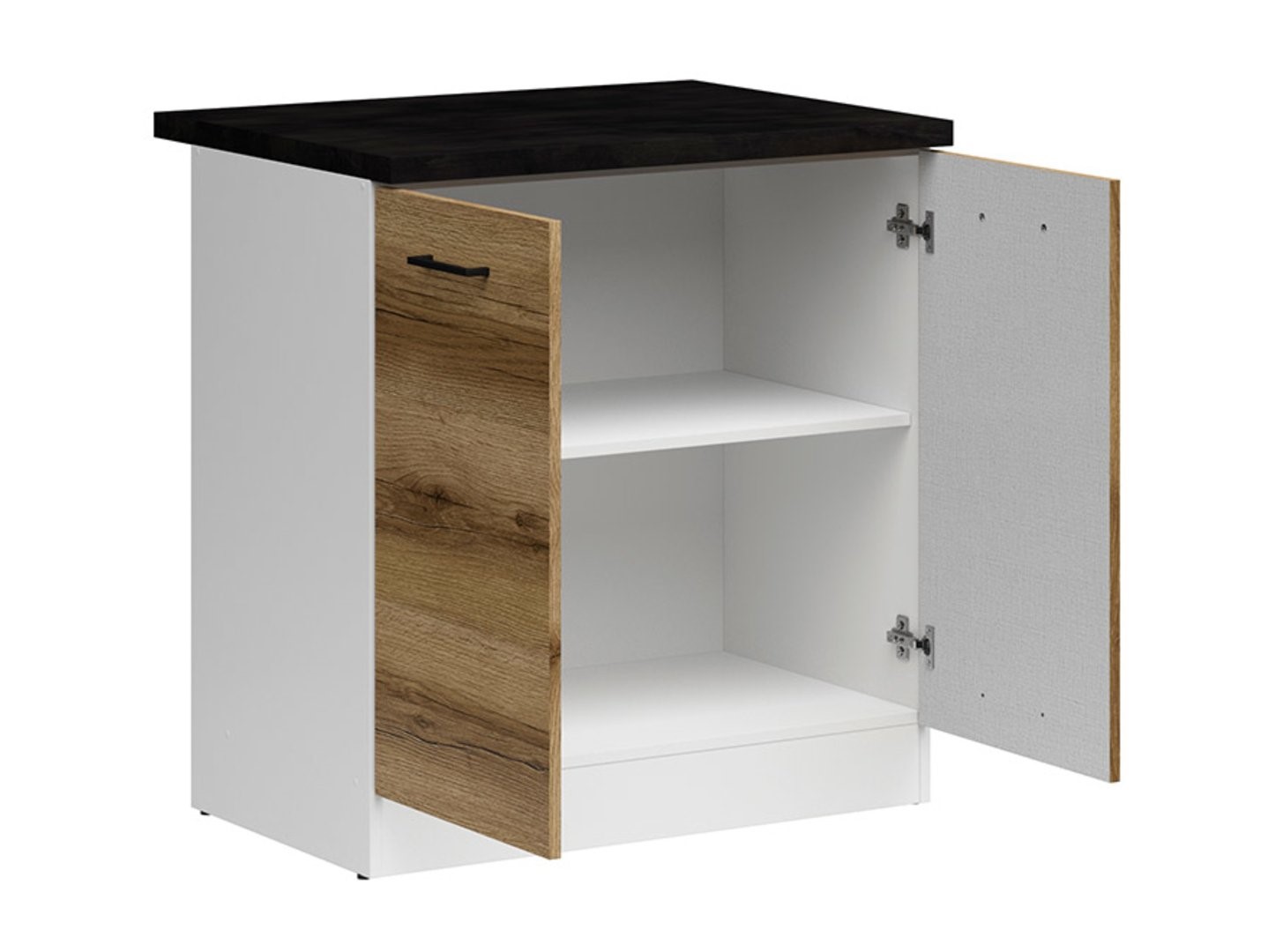 „Junona Line“ apatinė spintelė su stalviršiu – įspūdinga talpa. Apatinė spintelė turi praktišką lentyną, kuri padalija vidų į dvi dalis, todėl galite lengvai susisteminti virtuvės reikmenis pagal savo poreikius. Optimalūs 80 × 86 cm matmenys leidžia puikiai tinka net mažoms virtuvėms, efektyviai išnaudojant erdvę šalia orkaitės, kriauklės ir šiukšliadėžės.