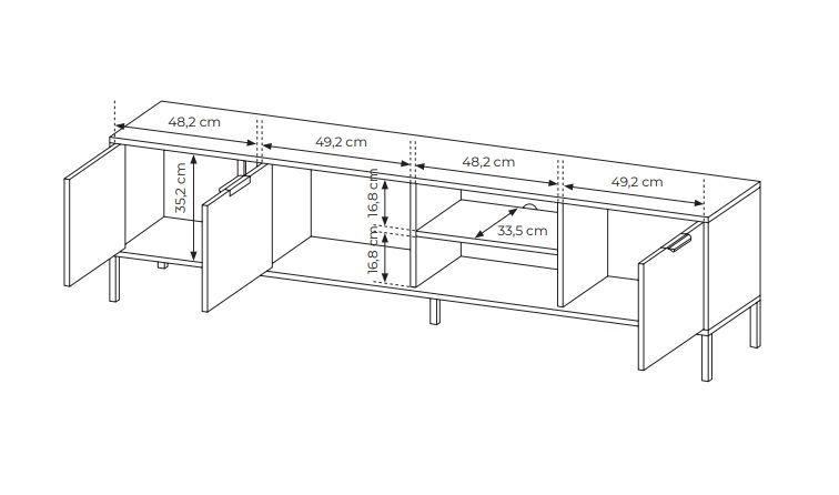 Lars 203 TV spintelė/staliukas/indauja – turi tris spinteles ir dvi nišas įrangai.