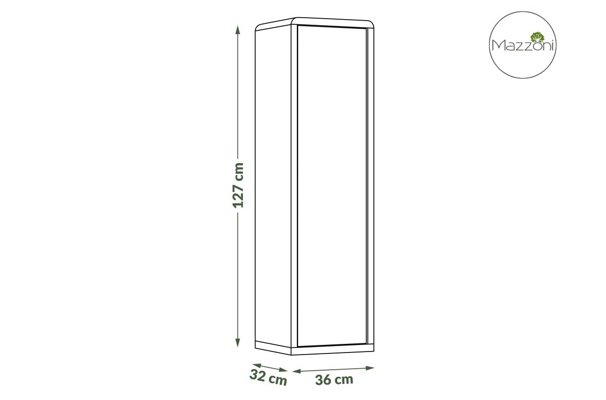 PLOTIS 36 cm, GYLIS 32 cm, AUKŠTIS 127 cm, MEDŽIAGOS MDF + Drožlių plokštė, PAVIRŠIUS Blizgus + Matinis, STILIUS Modernus, SVORIS SU PAKUOTE 31,5 kg