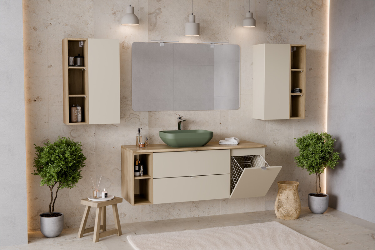 20 cm Cremona ąžuolo pakabinama spintelė. 20 cm Cremona ąžuolo pakabinama spintelė – tai tobulas elegancijos ir funkcionalumo derinys. Pagaminta iš patvarios laminuotos plokštės, ji suteikia šilumos minimalistiniam interjerui. Sukurkite harmoningą erdvę su „Dalia Cashmere“ kolekcija. Matmenys: Plotis (cm): 20 Gylis (cm): 44 Aukštis (cm): 50 Svoris (kg): 8 Techniniai duomenys: Korpuso medžiaga: laminuota plokštė Korpuso spalva: Cremona ąžuolas Montavimo būdas: Tvirtinamas prie sienos. Suteikite savo interjerui elegancijos ir praktiškumo su mūsų 20 cm Cremona ąžuolo pakabinama spintele. Šis unikalus baldas derina subtilią estetiką ir funkcionalumą, puikiai papildydamas minimalistinį išdėstymą. Šilti medžio atspalviai suteiks jūsų namams jaukią atmosferą, sukurdami tobulą foną kasdienei veiklai ir poilsiui. Ši spintelė sukurta atsižvelgiant į maksimalų naudojimo paprastumą. 44 cm gylis ir 50 cm aukštis daro ją puikiu sprendimu mažesnėms erdvėms, kur svarbus kiekvienas centimetras. Atviras dizainas leidžia lengvai pasiekti laikomus daiktus, todėl ji idealiai tinka vonios kambariui, virtuvei ar net svetainei. Pagaminta iš patvarios laminuotos plokštės, spintelė garantuoja ne tik estetinį patrauklumą, bet ir ilgaamžiškumą. Dėmesys detalėms ir kruopšti apdaila lemia baldų patvarumą ir eleganciją. Dėl universalaus dizaino ją galite lengvai derinti su kitais „Dalia Cashmere“ kolekcijos baldais, sukurdami darnią kompoziciją savo interjere. Sieninės spintelės surinkimas yra neįtikėtinai paprastas ir nereikalauja jokių sudėtingų žinių, todėl ją galite greitai ir be vargo integruoti į savo namus. Investuokite į baldą, kuris ne tik teigiamai paveiks jūsų erdvės estetiką, bet ir supaprastins kasdienį gyvenimą. Rinkitės 20 cm storio „Cremona Oak“ sieninę spintelę ir mėgaukitės jos žavesiu kiekvieną dieną!