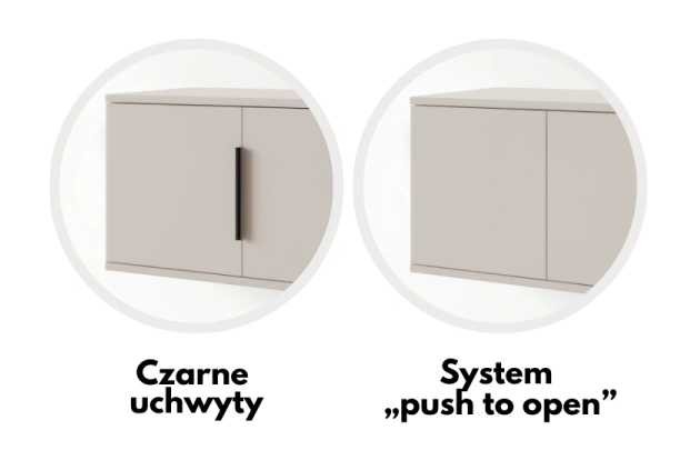 Standartiškai tiekiame su dviem atidarymo sistemomis: juodos metaline rankena ir atidarymo spustelėjus sistema.