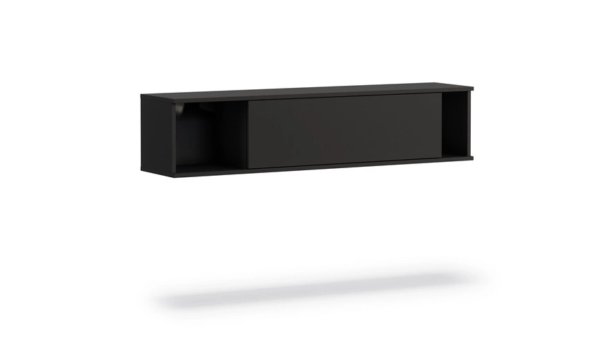 Tutti 135 cm juoda pakabinama spintelė, minimalistinio dizaino, stilinga, paprasta baldo forma su priekiu be rankenėlių