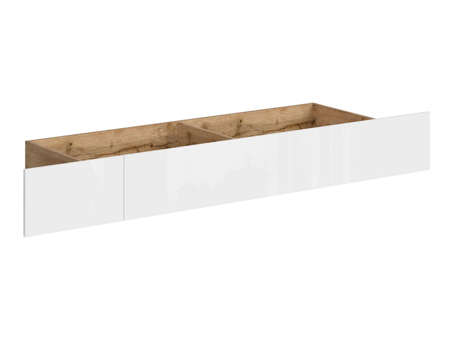 ’Nuis“ lovos stalčius – charakteringa tvarka paauglio kambaryje. Ar jūsų namai vis labiau virsta žaidimų aikštele? Tai ženklas, kad jūsų vaikas auga ir jam reikia erdvės, kurioje jis galėtų lavinti savo aistras. „Nuis“ baldų kolekcija – puikus sprendimas paauglio kambariui – paprastas, modernus dizainas, leidžiantis laisvai žaisti su spalvomis ir raštais. Paauglių kambariai gali būti nuolatinis netvarkos šaltinis. Užuot primesdami griežtas taisykles, rinkitės praktiškus sprendimus. „Nuis“ lovos stalčius siūlo ne tik vietą patalynei, bet ir puikią vietą žaislams, dėlionėms, sezoniniams drabužiams ir kitiems smulkiems daiktams laikyti. Tvarka prasideda nuo funkcionalių baldų! Stalčiaus priekis apdailintas elegantiška balta veidrodinio blizgesio spalva, kontrastuojančia su šiltu „Wotan“ ąžuolo korpuso atspalviu. Šis harmoningas derinys leis stalčiui puikiai derėti prie bet kokio interjero, suteikdamas jam modernumo. 80 x 200 cm stalčius puikiai papildo „Nuis 90“ lovą, sukurdamas funkcionalų duetą. Tvarkingai pakiškite jį po lova, kad sukurtumėte papildomos erdvės neprarandant vertingos vietos žaislams ar drabužiams. „Nuis“ lovos stalčius yra ne tik praktiškas, bet ir kolekcijos elementas, padedantis sukurti darnų kambario dizainą. Derinkite jį su kitais „Nuis“ serijos baldais, kad sukurtumėte unikalią erdvę, kurioje jūsų vaikas galėtų mokytis, lavinti savo pomėgius ir žaisti, išlaikydamas tvarką ir stilių!