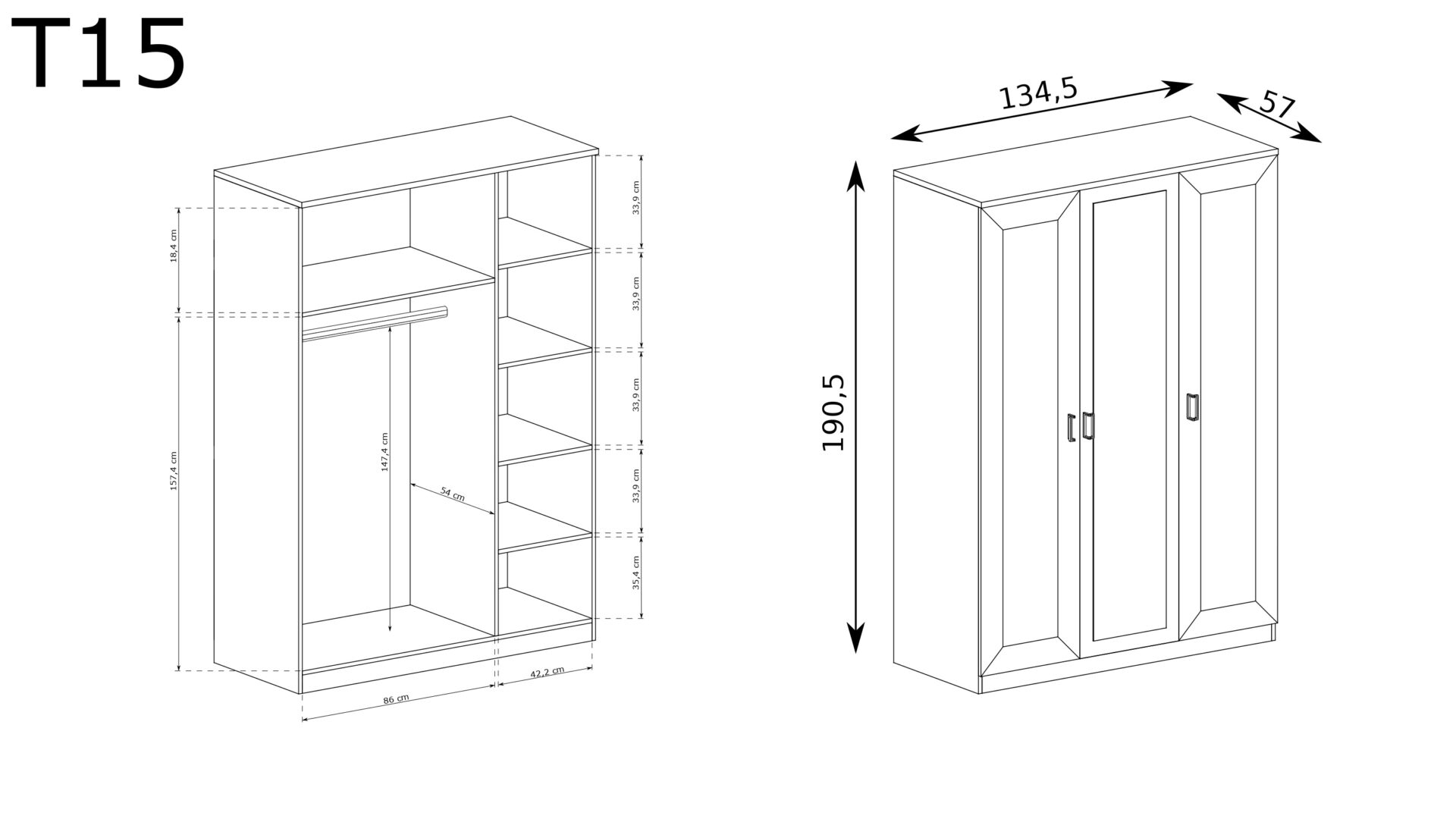 Pasinerkite į unikalaus dizaino ir funkcionalumo pasaulį su mūsų TADEUSZ-15 spinta. Ši įspūdinga trijų durų veidrodinė spinta yra puikus pasirinkimas visiems, ieškantiems elegancijos ir praktiškumo savo interjere. Jos „Centennial Oak“ apdaila traukia akį ir suteikia šilumos, puikiai papildydama kaimišką stilių, kuris niekada neišeina iš mados. Auksinių rankenėlių blizgesys suteikia šiai spintai prabangos, o laminuota plokštė užtikrina patvarumą ir atsparumą pažeidimams. Šis derinys paverčia TADEUSZ-15 spintą ne tik daiktų laikymo vieta, bet ir stilingu bet kurio kambario papildymu. Be to, veidrodis ant durelių vizualiai padidina erdvę, o jo blizgesys spinduliuoja eleganciją. Šios spintos funkcionalumas yra toks pat įspūdingas, kaip ir jos išvaizda. Interjeras sukurtas atsižvelgiant į kasdienį naudojimą. Vienoje pusėje rasite drabužių pakabą, puikiai tinkančią drabužiams pakabinti ant elegantiškų pakabų, o virš jos – praktišką lentyną aksesuarams. Kita vertus, vieta sulankstytiems daiktams ar patalynei laikyti leidžia lengvai susitvarkyti visus asmeninius daiktus.