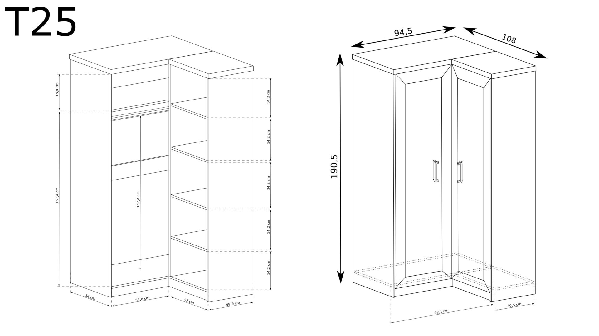 TADEUSZ-25 – 2 durų kampinė spinta, Lefkas ąžuolas