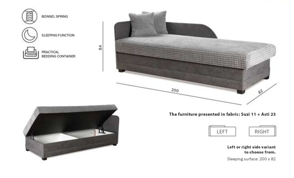 „Buli“ jaunimo sofa – puikus sprendimas paauglio kambariui. Dėl universalaus dydžio nuolat augantis vaikas jos per greitai neišaugs, o pati lova tilps net ir mažame kambaryje. Išradingai paslėptas daiktadėžė padeda palaikyti tvarką, o laisva gulėjimo zona puikiai tinka atsipalaiduoti, patogiai mokytis ar bendrauti su draugais. „Buli“ sofa-lova aprūpinta aukštos kokybės „Bonnell“ spyruoklėmis, o novatoriškas apmušalų porolonas garantuoja sveiką ir tvirtą sėdėjimą. Net ir susidėvėjusi lova nesulinks nuo naudotojo svorio.