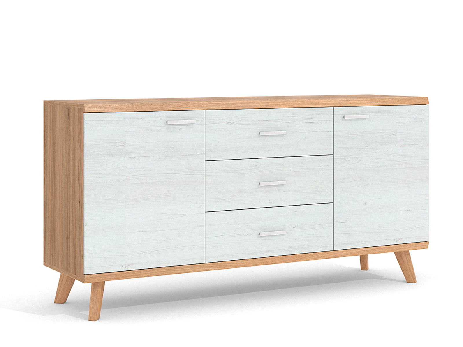 Į krepšelį Palyginti Komodos FORN komoda su trimis stalčiais, 106 cm, Delano ąžuolas tamsus/blizgi balta 261.67€