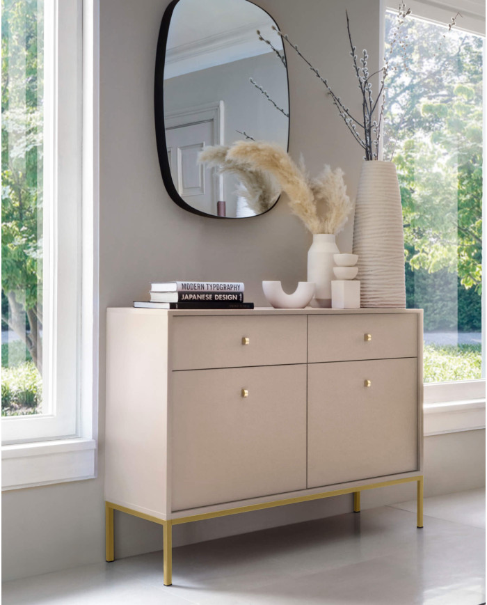 Tualetinis staliukas, konsolė Mono MT104, stalčiai, smėlio spalvos/auksinis rėmas