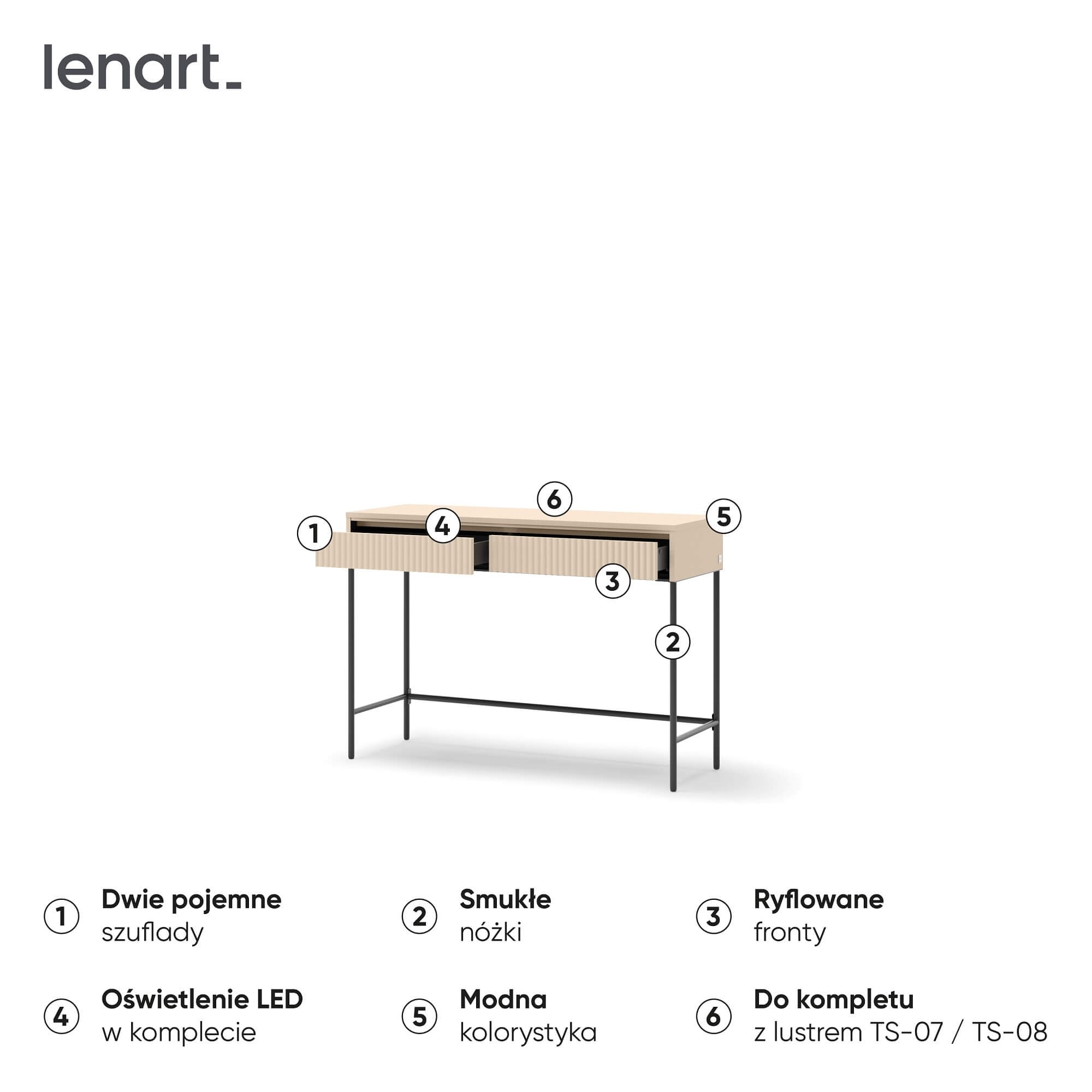 TREND TS-09 2S kosmetinis tualetinis staliukas su stalčiais | LED apšvietimas | smėlio spalvos, juoda