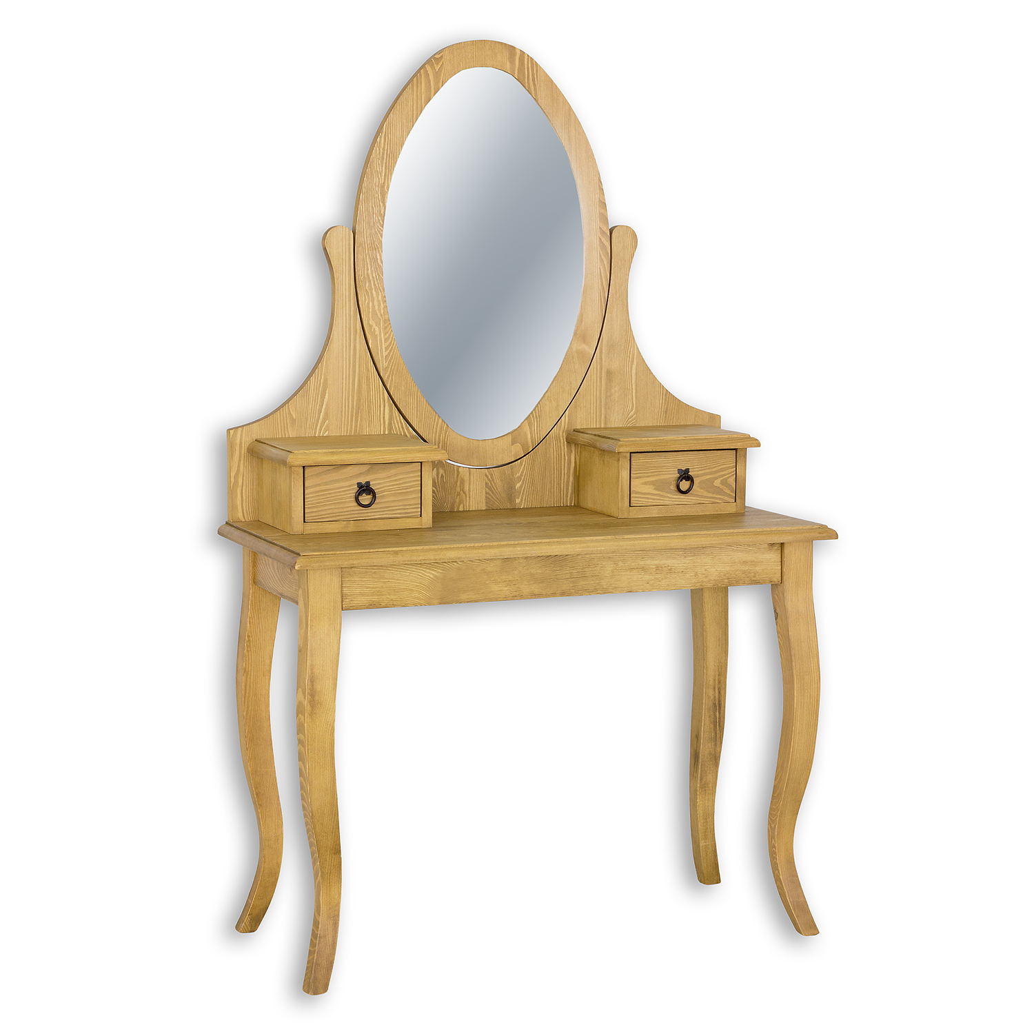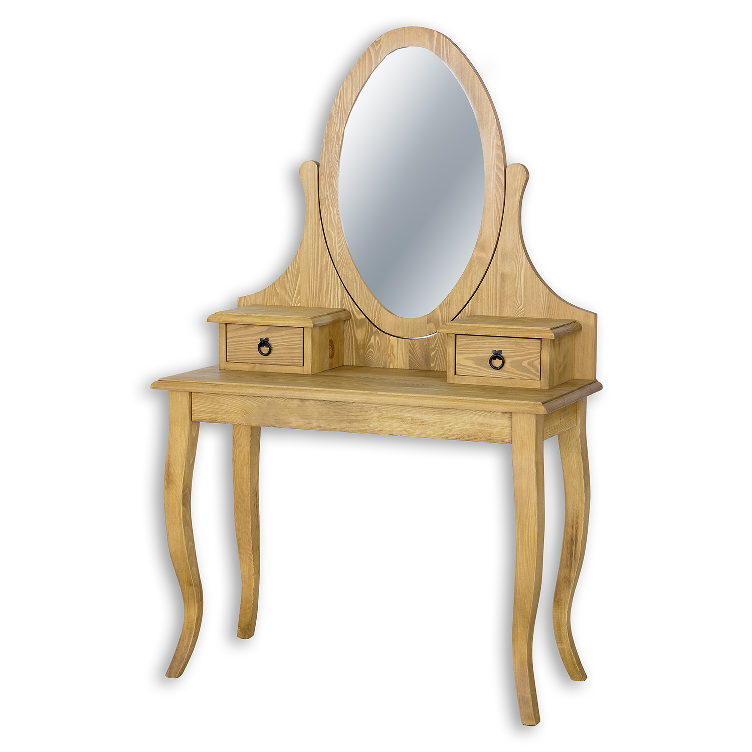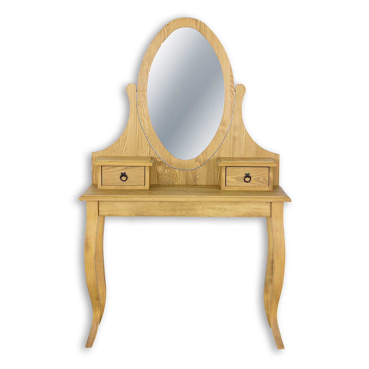 Vaškuotas tualetinis staliukas LT706. Sukurtas kaimišku stiliumi, jis pagamintas vien iš tvirtos pušies medienos. Tualetinis staliukas turi didelį, ovalų veidrodį su reguliuojamu pasvirimu ir du patogius stalčius kosmetikai ir niekučiams, pritvirtintus ant medinių bėgelių. Jo konstrukcijoje buvo panaudotos rankų darbo metalinės detalės. Tualetinis staliukas yra labai asmeniška erdvė, puikiai tinkanti mėgstamai kosmetikai eksponuoti, o stalčiai taip pat gali būti naudojami kitiems niekučiams. Jis tikrai gali būti dekoratyvinis elementas bet kuriame miegamajame – bet kokio stiliaus. Šis baldas, primenantis rašomąjį stalą ar konsolinį staliuką, prie kurio galite sėdėti ir pasidažyti ar atlikti vakaro grožio ritualus, kai kuriems gali būti užgaida, tačiau kitiems jis bus nepakeičiamas bet kokio interjero papildymas. Matomas medienos raštas išryškina natūralios medienos grožį. LT706 suteiks bet kokiam interjerui unikalią atmosferą, kupiną šilumos ir jaukios atmosferos. Baldai padengti natūraliu bičių vašku, kuris sukuria apsauginį sluoksnį nuo drėgmės ir kartu maitina medieną. Vaškavimo procesas paryškina natūralią medienos raštą ir pagilina jos natūralią spalvą. Bičių vaškas yra natūralus produktas, todėl vaškuoti baldai pasižymi antistatinėmis savybėmis, mažinančiomis dulkių kaupimąsi. Papildomas vaškuotų baldų privalumas – šilkiniai lygus paviršius ir malonus natūralaus medžio aromatas.