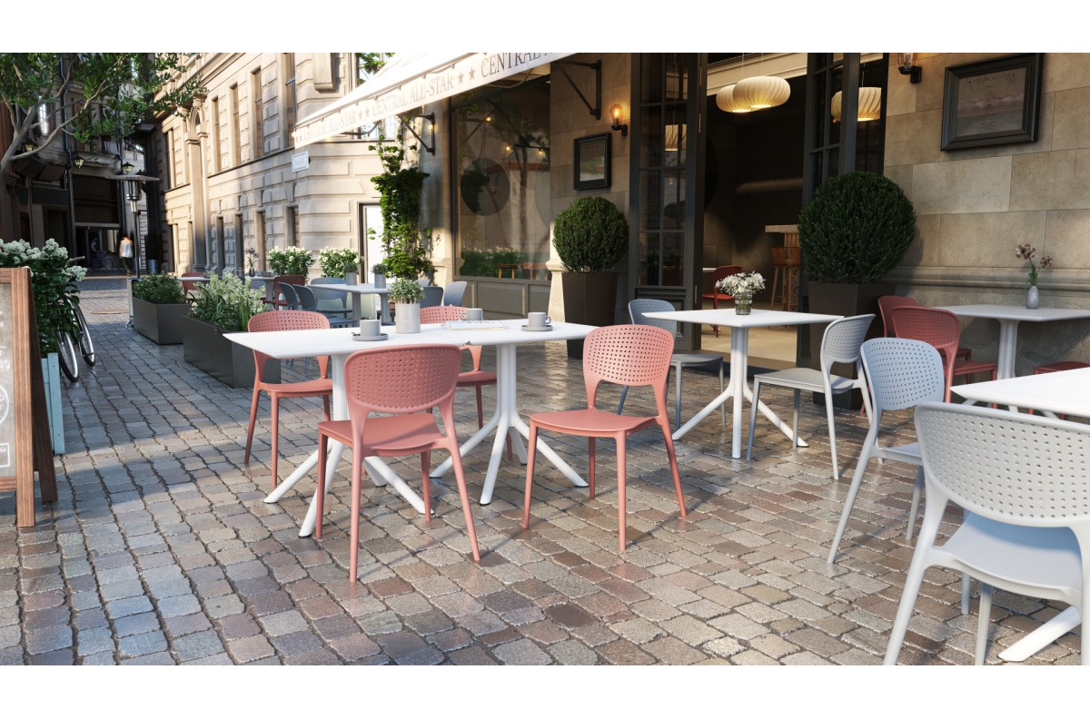 TODO Salmon – MODERNI PLASTIKINĖ SODO KĖDĖ (virtuvėje, kavinėje, sode) [SUDEDAMA VIENĄ KARTĄ]