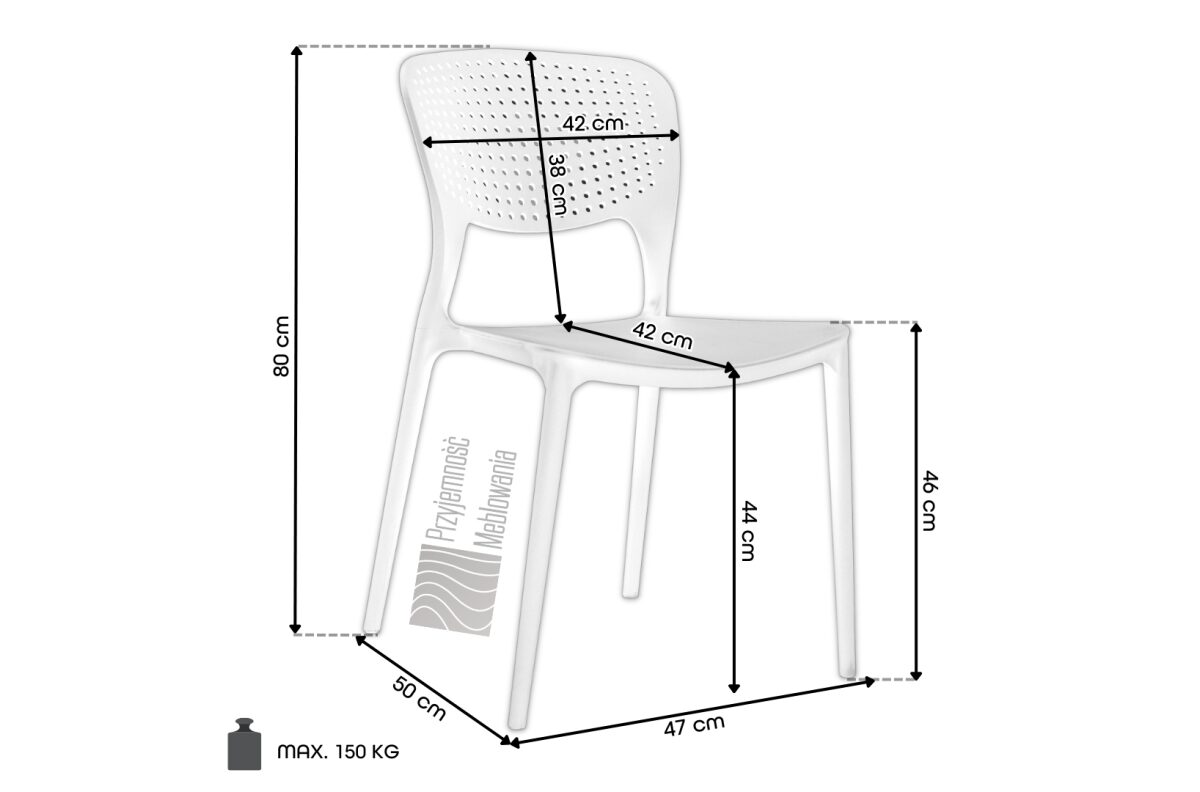 Kėdė pagaminta iš 100% ABS plastiko, todėl ją galima naudoti ilgus metus. Ji atspari įbrėžimams, smūgiams ir ekstremalioms vasaros bei žiemos temperatūroms. Neblunka veikiama UV spindulių ir ilgai išlaiko spalvą. Be to, ABS plastikas yra saugus žmonėms ir atsparus įvairioms rūgštims, druskoms ir riebalams. Kėdė yra labai lengva ir lengvai sandėliuojama dėl savo sudedamos konstrukcijos. Kėdės kojos taip pat turi specialius paminkštinimus, apsaugančius grindis nuo įbrėžimų.