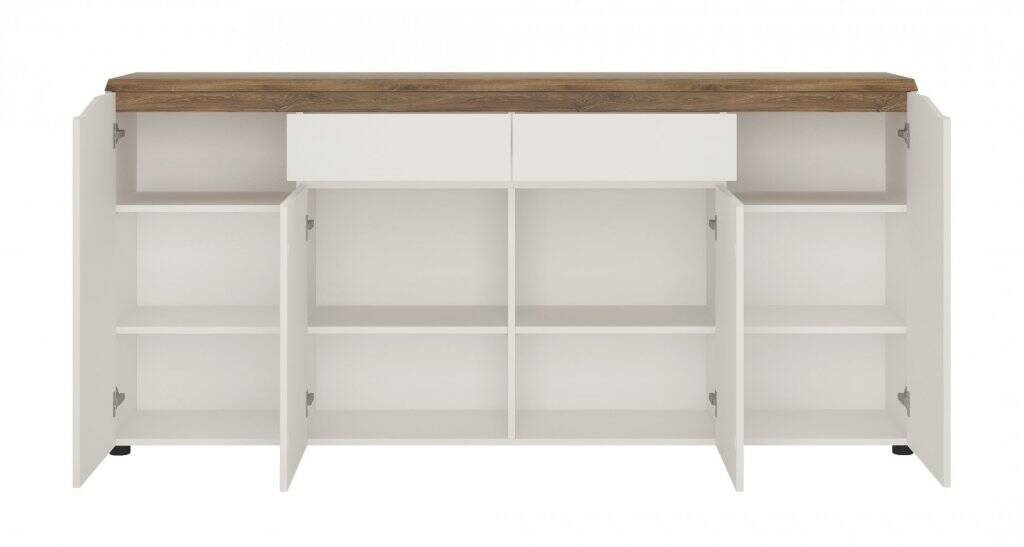 Toledo TOLK04 – Komoda su stalčiais 4D2S, balta/Stirling ąžuolas