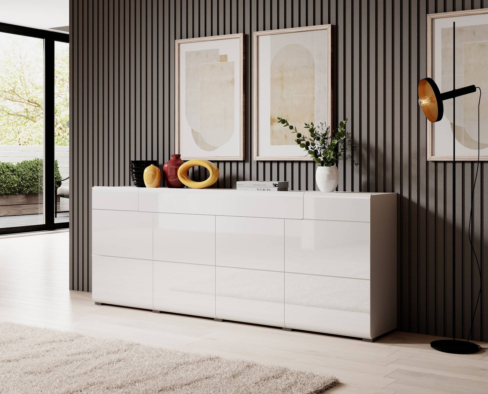 Toledo WM komoda su stalčiais 4D1S, blizgi balta