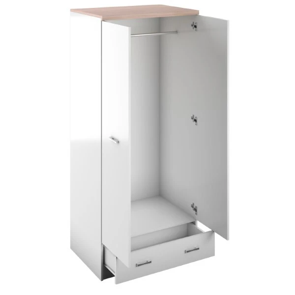 Elegantiška, tradicinė TOP MIX spinta – puiki vieta drabužiams laikyti. Be tradicinės pakabinimo vietos, ji taip pat turi ištraukiamą stalčių, kuris padidina jos funkcionalumą. Paprasta forma ir minimalistinis dizainas sukuria baldą, kuris gali papildyti bet kurį miegamąjį, jaunimo kambarį ar persirengimo kambarį.