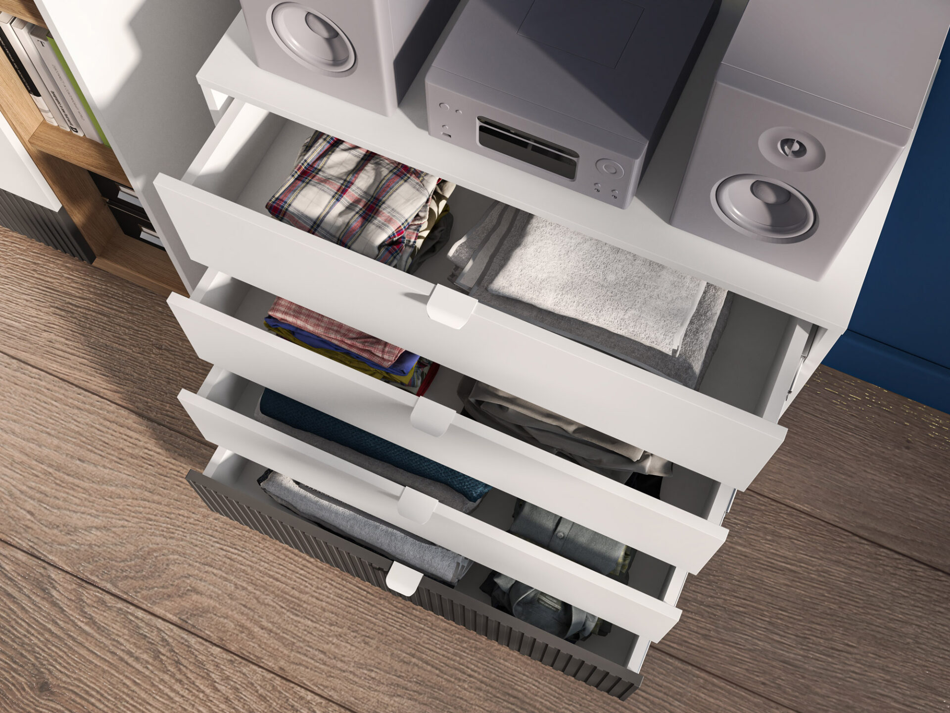 • Pilno ištraukimo stalčiai su papildomai sutvirtintu dugnu.