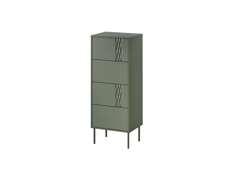 Ši smėlio arba žalios spalvos komoda ant aukštų kojelių yra elegantiškas ir modernus pasirinkimas jūsų svetainei. Šis baldas ne tik atlieka praktinę funkciją, suteikia vietos daiktams susidėti, bet ir suteikia interjerui stiliaus.