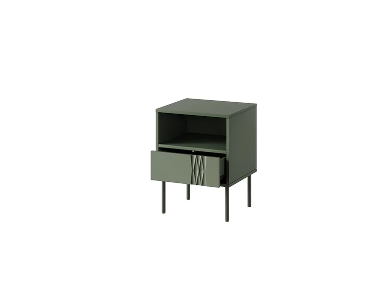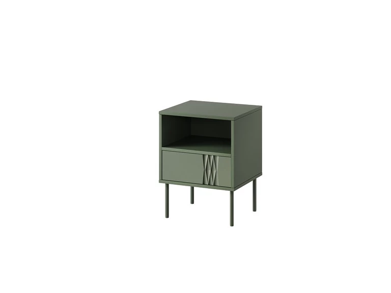 Ši „Tresse“ naktinė spintelė jus sužavės. Galima rinktis žalios arba smėlio spalvos – ji yra ir dekoratyvi, ir praktiška. Unikaliai frezuoti fasadai – tikras privalumas. Aukštos metalinės kojelės leidžia lengvai palaikyti tvarką erdvėje.