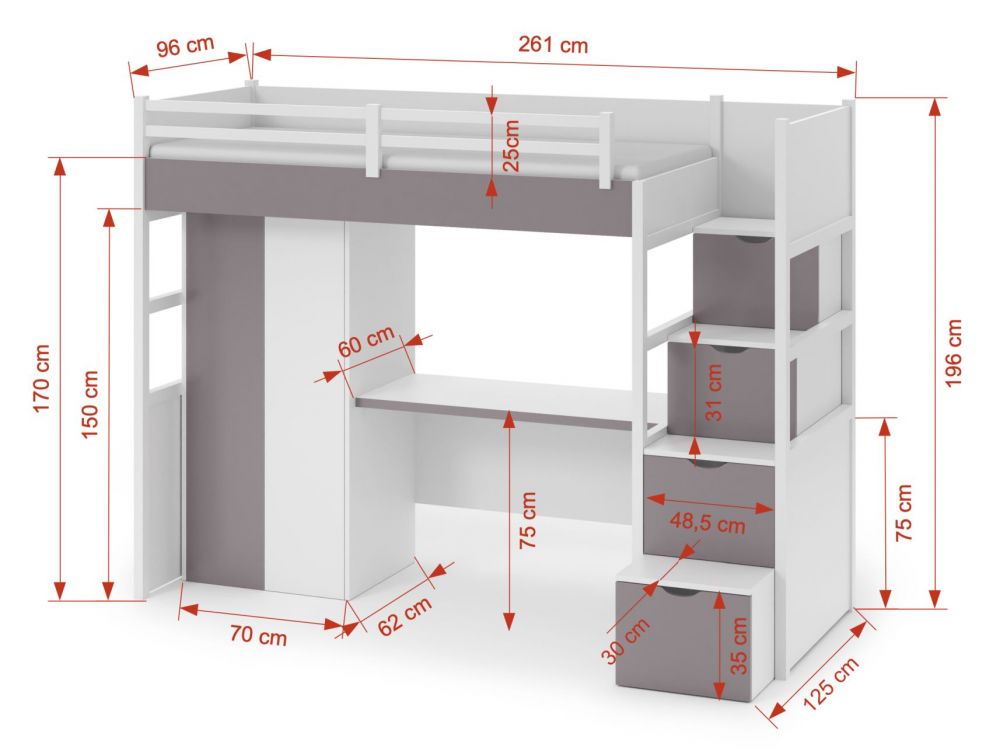 Norite sutaupyti vietos vaiko kambaryje? Peržiūrėkite mūsų dviaukštes lovas su rašomuoju stalu! Šis miegojimo ir mokymosi erdvės derinys yra puikus sprendimas mažoms erdvėms. Jos sukuria daugiafunkcį kambarį neaukojant stiliaus ar komforto. Mūsų dviaukštė lova su rašomuoju stalu yra puikus sprendimas tėvams, norintiems optimizuoti erdvę vaiko kambaryje. Ši baldų kolekcija buvo kruopščiai atrinkta, kad patenkintų reikliausių klientų lūkesčius. Mes teikiame pirmenybę tvirtai konstrukcijai, naudojimo paprastumui ir patraukliam dizainui. Mes garantuojame, kad mūsų dviaukštės lovos su rašomuoju stalu yra ne tik patvarios, bet ir estetiškai patrauklios, todėl tai puikus sprendimas, kuris atlaikys laiko išbandymą.