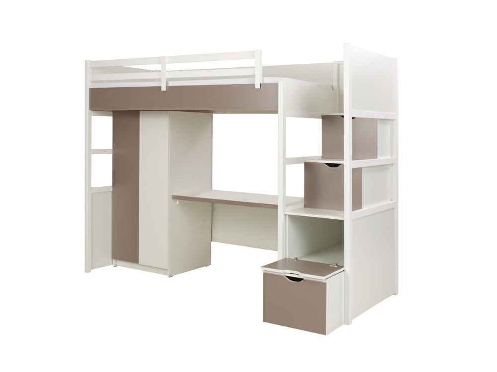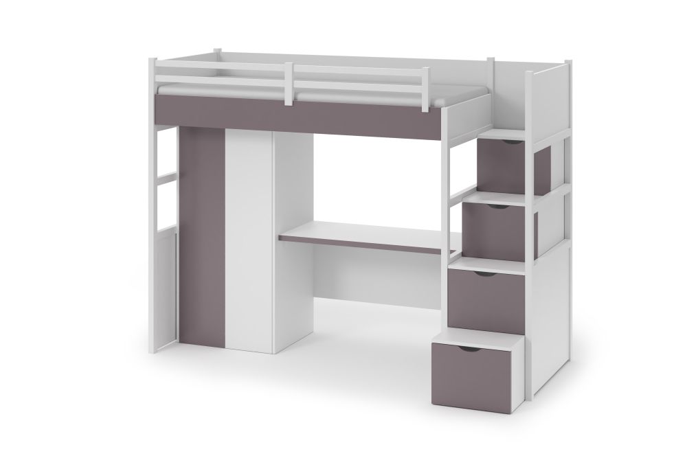 Dviaukštė lova „Tristan“ su spinta ir rašomuoju stalu yra moderni lova, skirta vaikams ir paaugliams.
