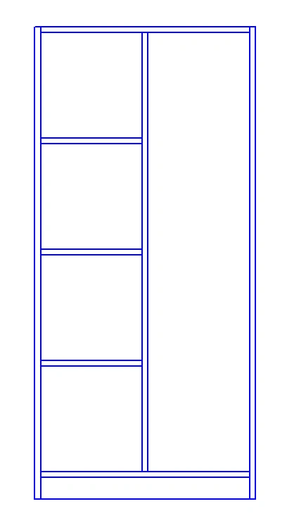 Spintos vidus padalintas į du skyrius. Kairė pusė padalinta į keturis skyrius, o dešinėje pusėje yra pakaba daiktams pakabinti.