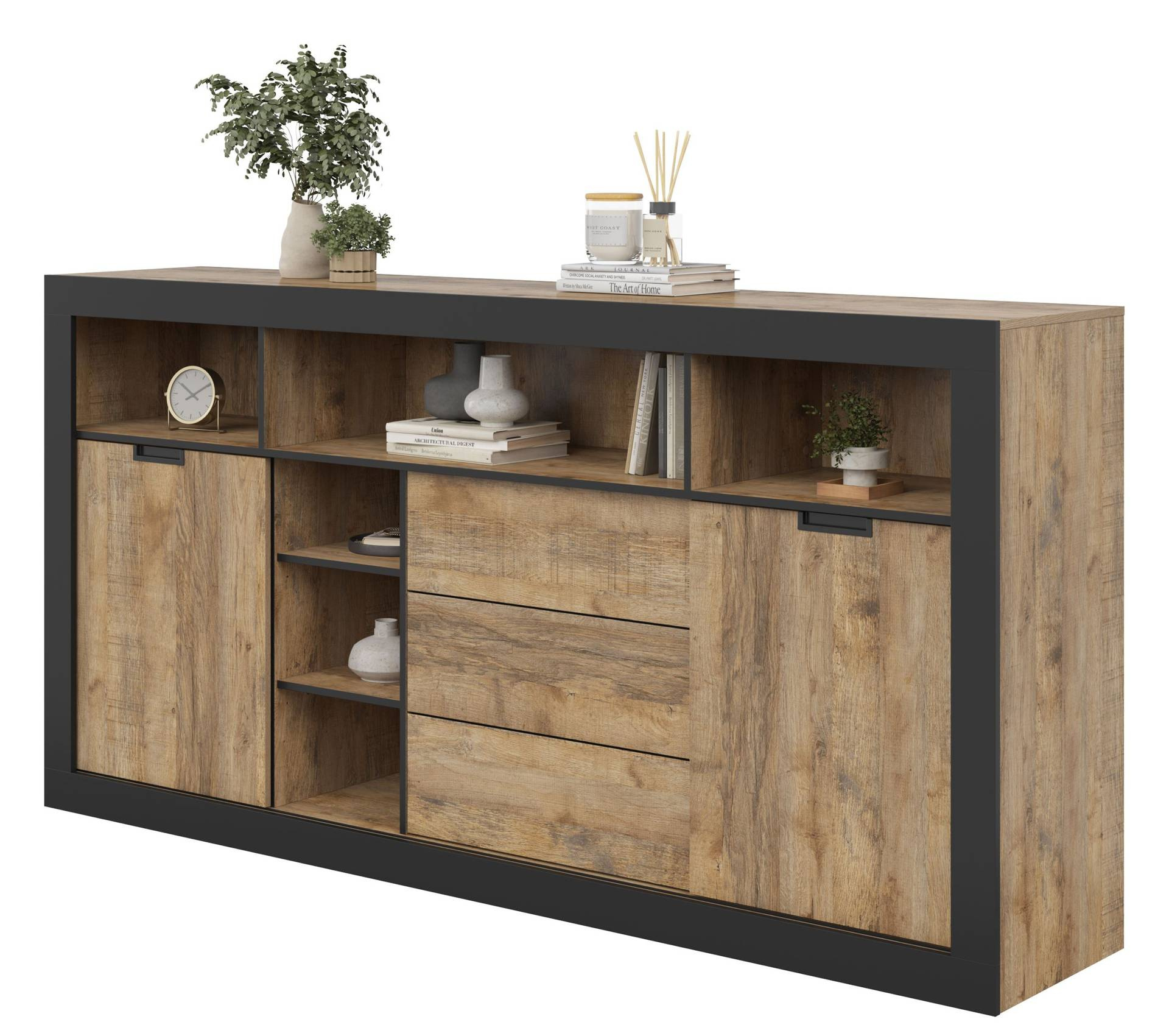 Sveiki atvykę į elegantiško dizaino ir funkcionalumo pasaulį su garsaus „Helvetia“ prekės ženklo aukšta „Tudor“ komoda. Vaikiško lengvumo ir modernaus stiliaus 2D3S komoda, pagaminta iš vaizdingo „Samdal“ ąžuolo atspalvio su subtiliu matinės juodos spalvos akcentu priekyje, yra puikus bet kokio interjero akcentas. Puikiai tinka svetainei, miegamajam ar prieškambariui, ji suteikia erdvei charakterio, derėdama tiek su tradiciniu, tiek su moderniu dekoru. Galite būti tikri, kad „Tudor“ komoda ne tik patenkins jūsų daiktų laikymo poreikius, bet ir taps stilingu dekoratyviniu elementu. Elegantiškas siluetas, paryškintas rafinuotomis juodomis detalėmis, paverčia jį dėmesį traukiančiu ir bendravimą skatinančiu baldu. Šilti ąžuolo atspalviai ir kruopščiai apgalvota laminato konstrukcija sukuria jaukią atmosferą, kuri užpildys bet kurį kambarį. Šiame balde dera praktiškumas ir estetika. Trys erdvios lentynos ir du erdvūs skyriai leidžia patogiai laikyti knygas, dekoracijas ir kasdienius aksesuarus, todėl ši indauja yra išskirtinai funkcionalus sprendimas bet kokiai progai. Paprastas dizainas ir lengvas surinkimas paverčia „Tudor“ indauja akimirksniu jūsų interjero papildymu.
