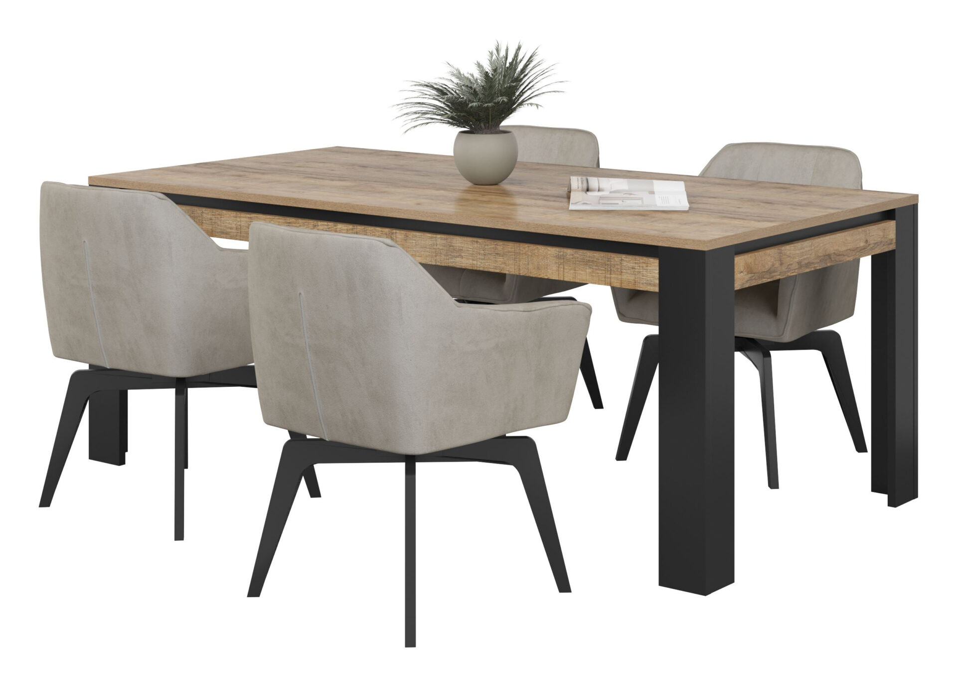 „Tudor“ valgomojo stalas – puikus pasirinkimas visiems, norintiems savo interjerui suteikti unikalaus stiliaus ir elegancijos. Universali „Samdal Oak“ ir matinės juodos spalvų paletė puikiai dera prie įvairių dekoro stilių. Nesvarbu, ar jums labiau patinka skandinaviškas minimalizmas, ar klasikinis paprastumas, šis stalas neabejotinai pabrėš jūsų valgomojo charakterį. Įspūdingi matmenys – 195 cm pločio, 77 cm aukščio ir 100 cm gylio – leidžia patogiai pietauti su šeima ir draugais. Dėl to „Tudor“ stalas yra namų širdis, vieta, kur dalijamės kasdienio gyvenimo džiaugsmais. Unikalus stalo dizainas puikiai tinka tiek kasdieniams patiekalams, tiek ypatingoms progoms. Laminuota apdaila užtikrina ne tik elegantišką išvaizdą, bet ir patvarumą bei lengvą valymą. „Samdal Oak“ stalviršis yra atsparus įbrėžimams, todėl idealiai tinka šeimoms su vaikais. Matinės juodos kojelės suteikia modernumo ir kartu stabilumo visai konstrukcijai.