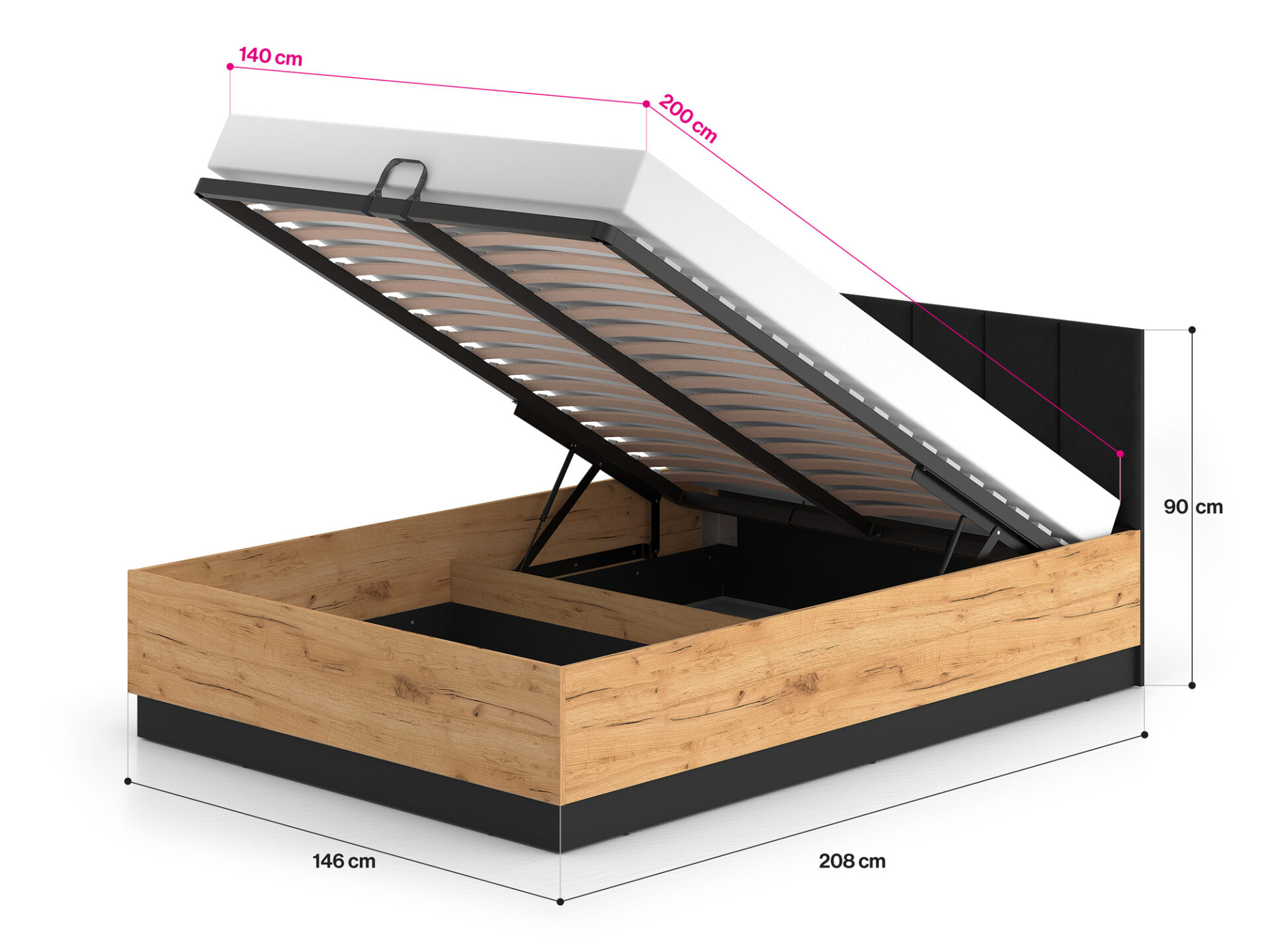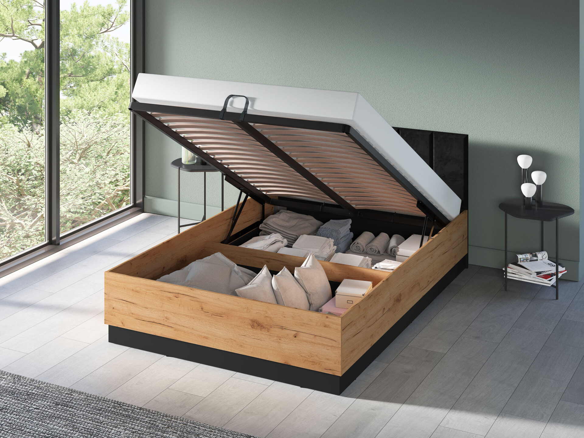 • Pakeliamas rėmas ir patalynės skyrius įeina į standartinę komplektaciją.