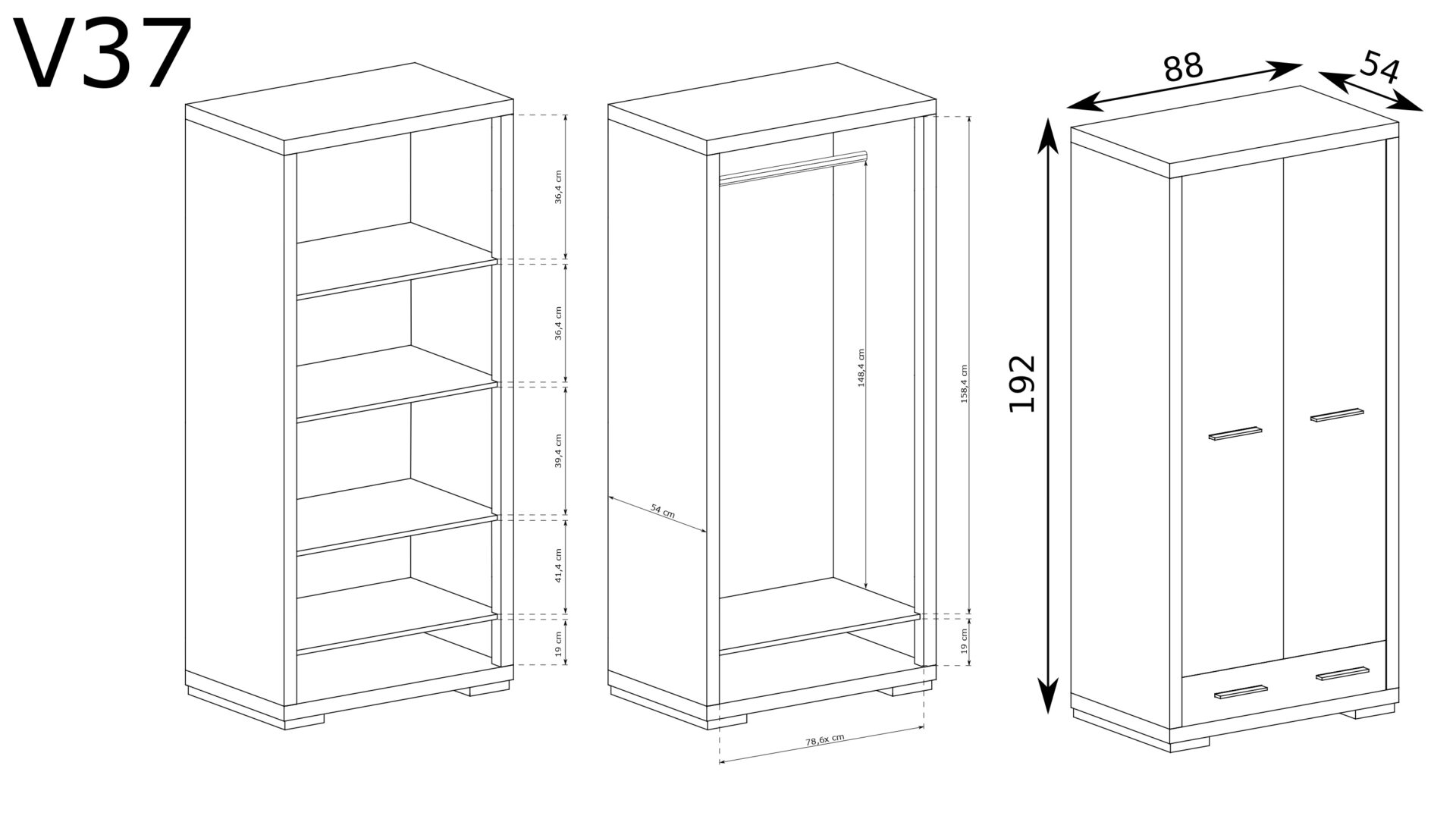Atraskite išskirtinę „Santana Jasna“ kolekcijos „VEGAS-37“ spintą, kuri pakeis jūsų interjerą ir suteiks jam modernumo. Elegantiška forma ir prislopintos spalvos puikiai derės prie įvairių stilių – nuo minimalistinio iki skandinaviško. 88 cm pločio ir 192 cm aukščio ši spinta yra puikus sprendimas tiems, kurie vertina funkcionalumą ir estetiką viename. Šį baldą išskiria apgalvotas dizainas, pritaikytas mūsų kasdieniams poreikiams. Spintos viduje yra erdvus drabužių pakabinimo bėgelis, todėl ją lengva sutvarkyti. Be to, po bėgeliu yra stalčius, kuriame telpa ne tik drabužiai, bet ir dokumentai bei kiti aksesuarai, kuriuos paprastai sunku rasti, kai jie paslėpti įvairiose vietose. Ši spinta puikiai tinka miegamajam, svetainei ar biurui, patenkindama įvairius poreikius. Sidabrinės metalinės rankenėlės puikiai papildo bendrą baldo koncepciją, pabrėždamos unikalų jo stilių. „Jarstol“ baldai garantuoja kokybę, o tokios medžiagos kaip laminuota plokštė užtikrina patvarumą ir atsparumą pažeidimams. „VEGAS-37“ spinta derina modernumą su klase, todėl tai idealus pasirinkimas žmonėms, ieškantiems estetiškų, tačiau praktiškų interjero dizaino sprendimų.