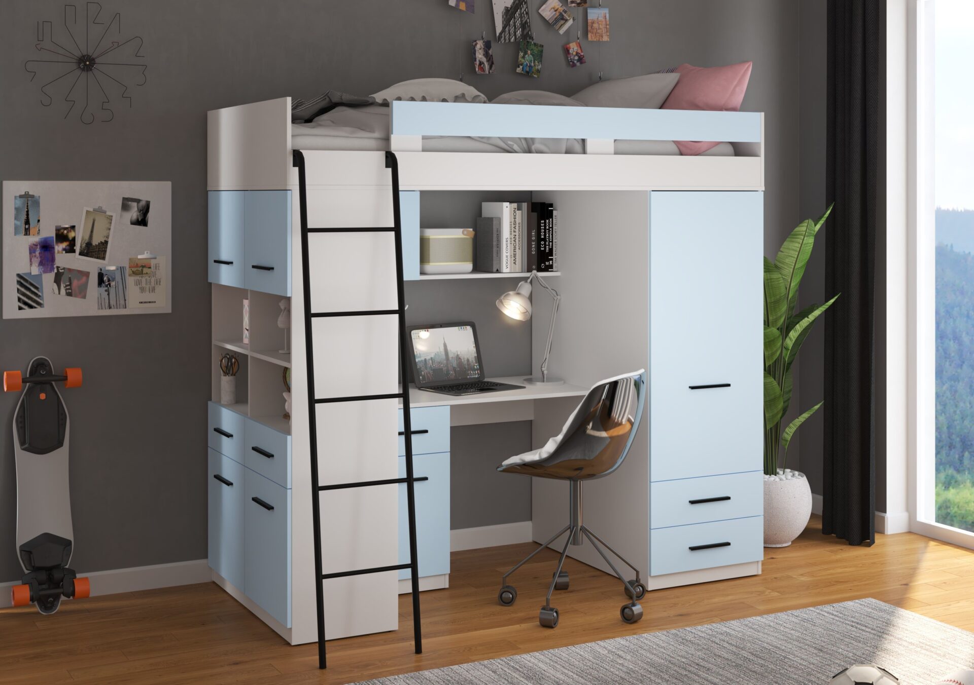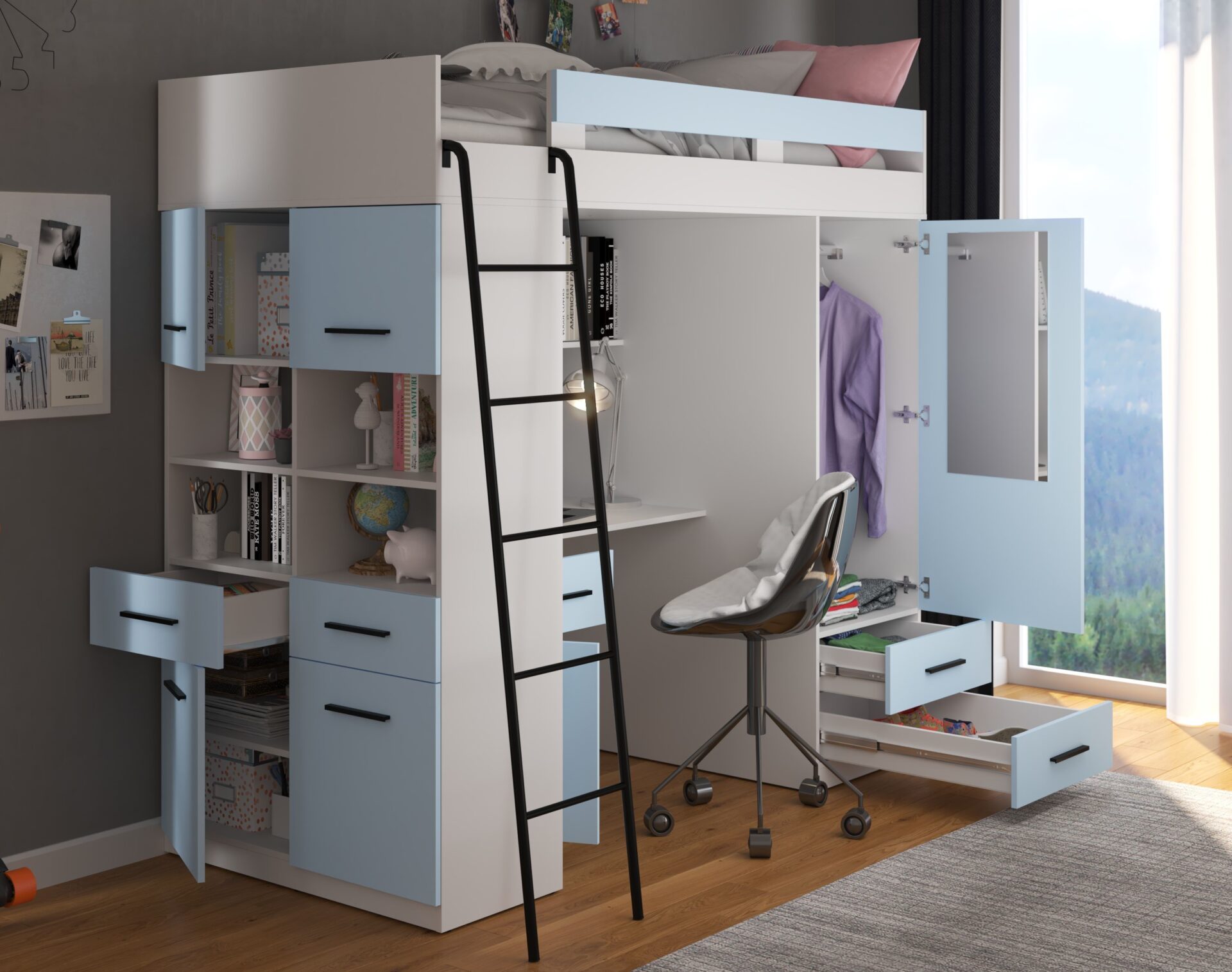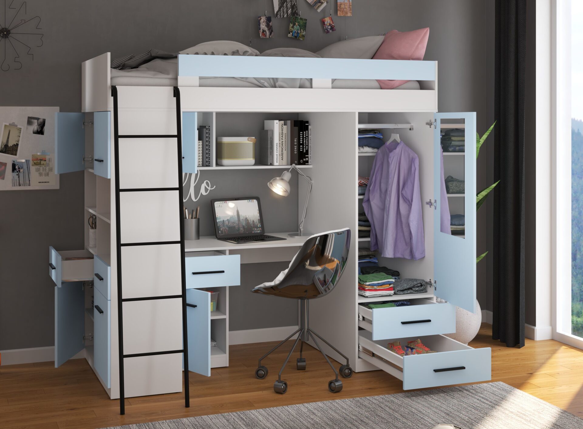 Būkite pirmas aprašęs “VELVE L antresolė be matinės baltos / mėlynos spalvos”