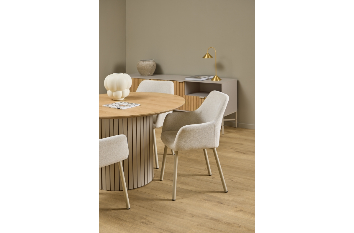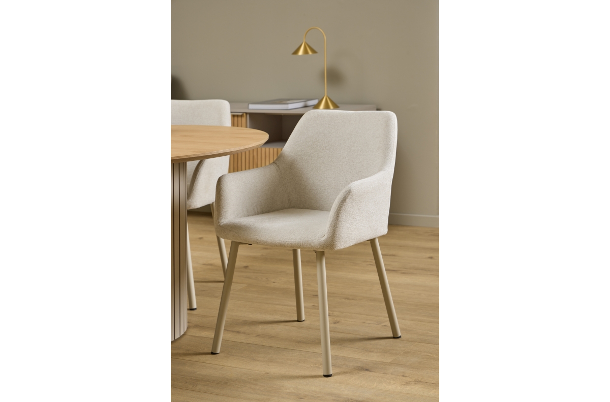 Iš itin patvaraus, lengvai prižiūrimo audinio pagaminti apmušalai derina estetiką ir FUNKCIONALUMĄ, o lieknos, bet tvirtos, milteliniu būdu dažytos plieninės kojelės užtikrina stabilumą ir ilgaamžiškumą.