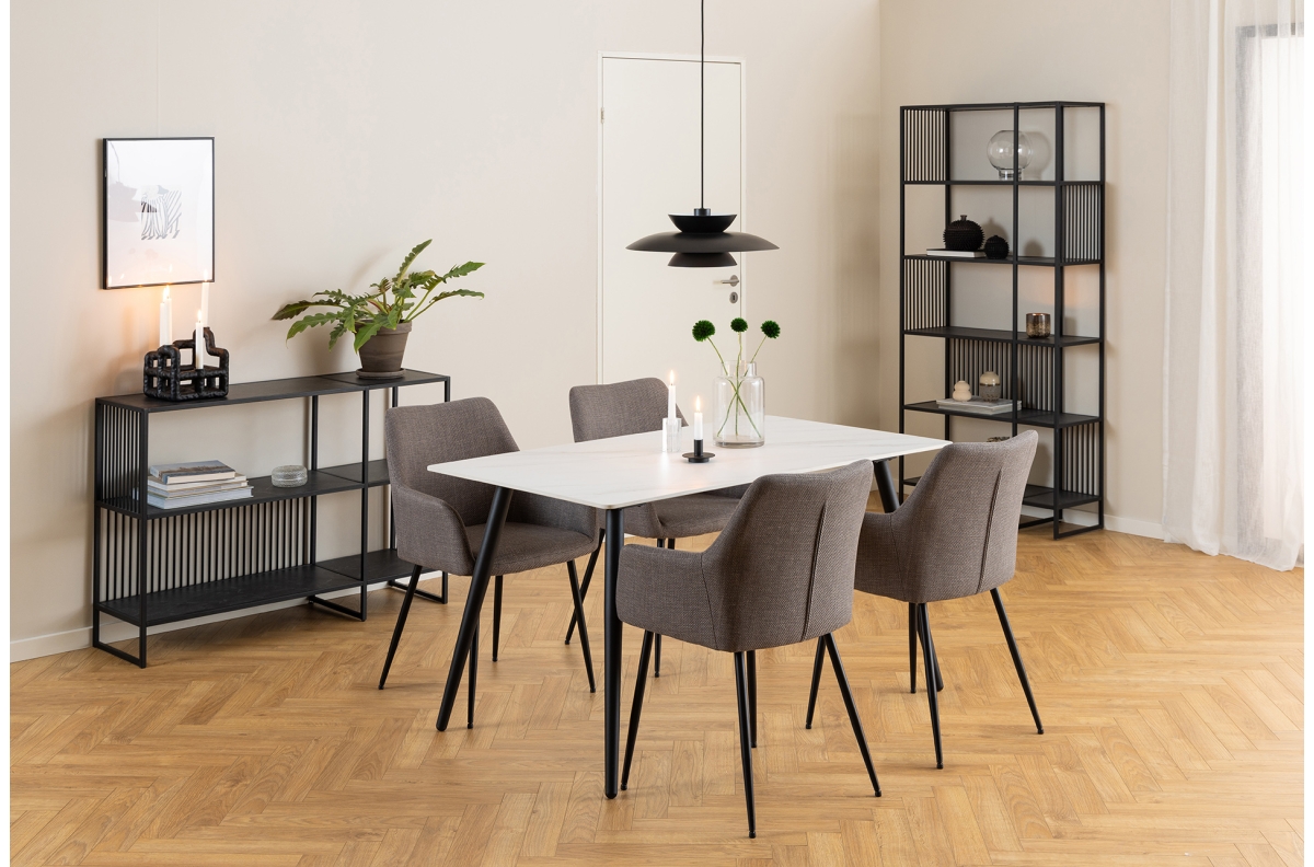 Iš itin patvaraus, lengvai prižiūrimo audinio pagaminti apmušalai derina estetiką ir FUNKCIONALUMĄ, o lieknos, bet tvirtos, milteliniu būdu dažytos plieninės kojelės užtikrina stabilumą ir ilgaamžiškumą.