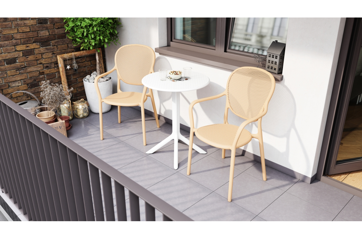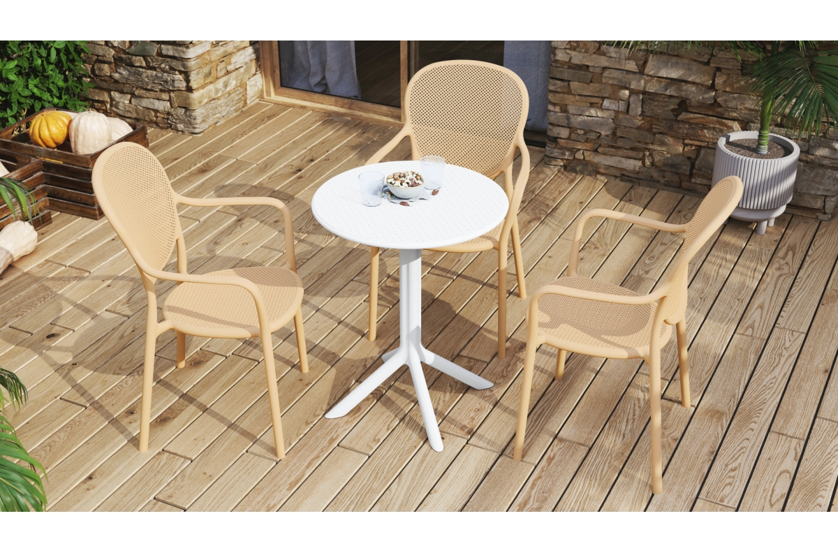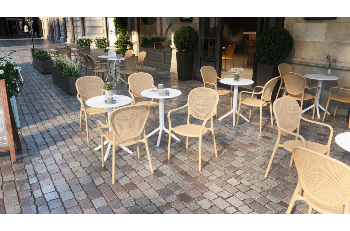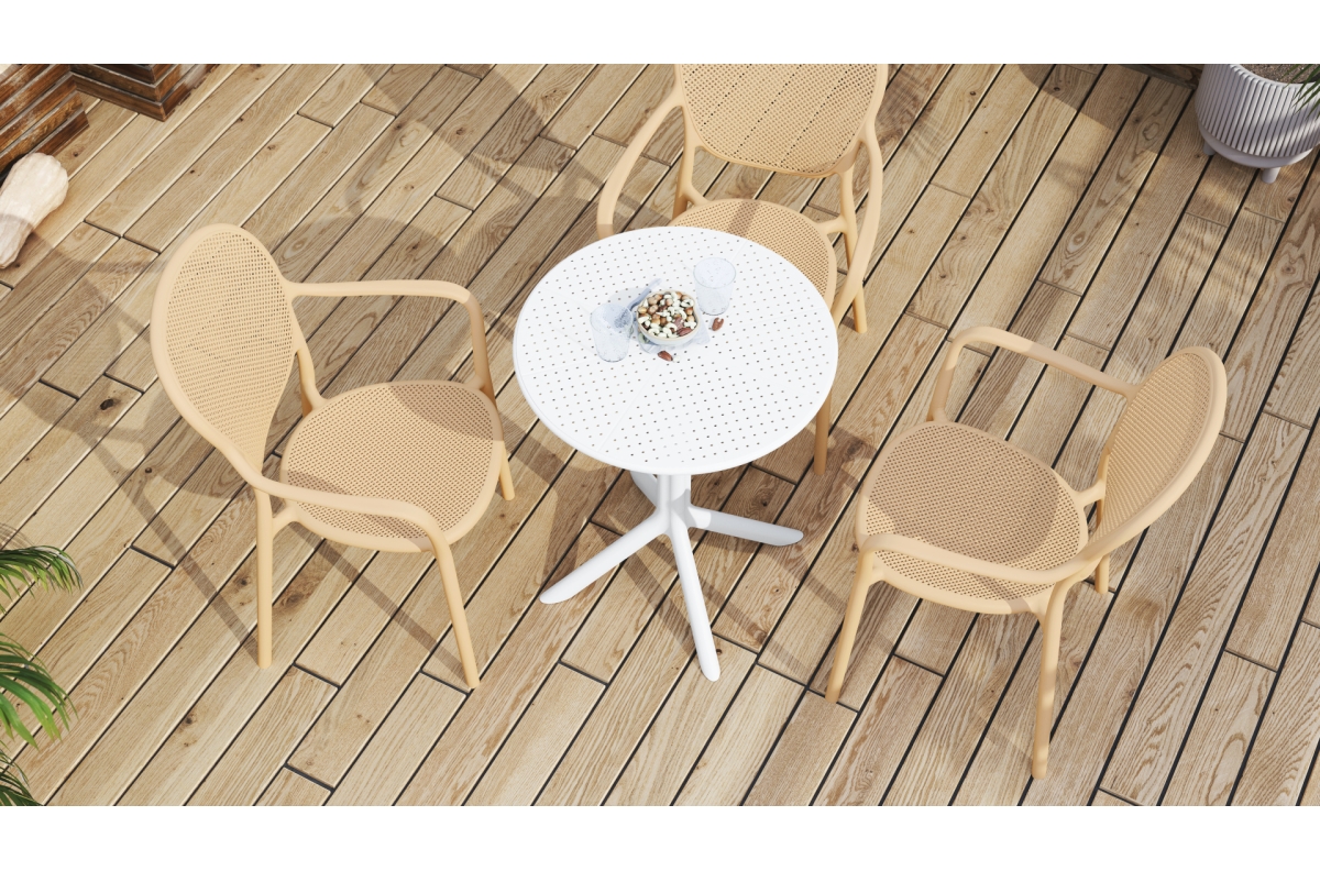 VERANO kėdė – tai klasikinio ir modernaus stiliaus derinys, idealiai tinkanti naudoti lauke. Pagaminta iš aukštos kokybės plastiko, ji yra lengva, patvari ir atspari oro sąlygoms, tokioms kaip lietus ir UV spinduliai, todėl tai puikus pasirinkimas ilgus metus.