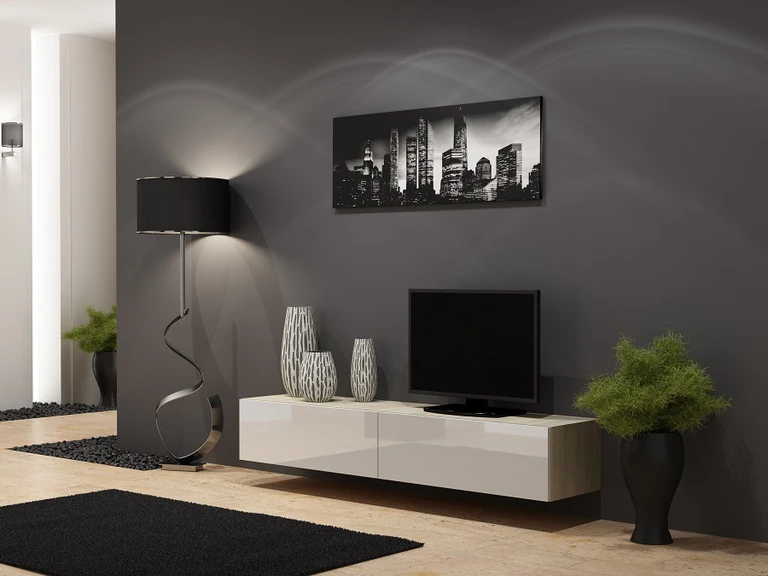 Moderniam interjerui rinkitės baldus su blizgiais arba pilnai Wotano ąžuolo fasadais. VIGO ‘180’ televizoriaus staliukas idealiai tinka tiek mažoms, tiek didelėms erdvėms.