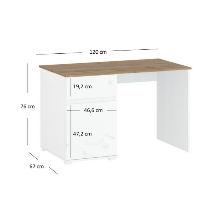 VIGO BOS rašomasis stalas 1d1s/120 baltai blizgi / wotan ąžuolas