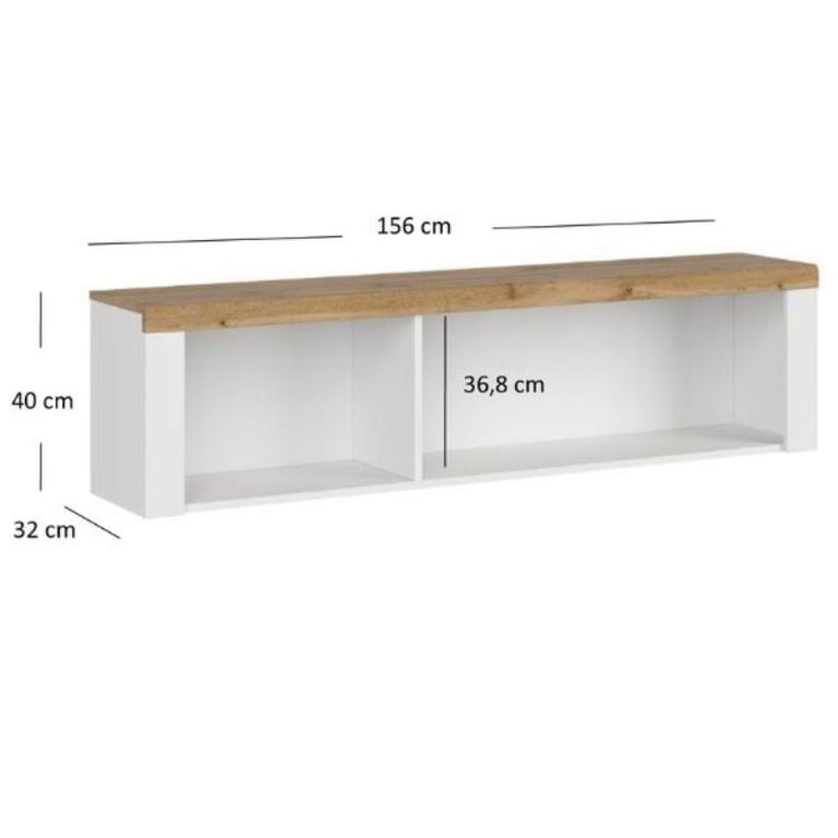 Ši prie sienos pakabinama lentyna yra funkcionalus baldas, skirtas įvairiems daiktams laikyti. Ją galima naudoti kaip knygų lentyną, vertingų dekoracijų ir atminimo dovanėlių vietą arba kaip vietą dokumentams ir biuro reikmenims. VIGO prie sienos pakabinama lentyna turi atviras lentynas, kuriose yra daug vietos daiktams susidėti. Universali balta apdaila ir ’Wotan“ ąžuolo stalviršis daro šį baldą puikiai tinkantį svetainėms, paauglių ir vaikų kambariams, koridoriams, valgomiesiems ir net namų biurams. VIGO knygų lentyna patenkins kiekvieną modernaus stiliaus gerbėją, vertinantį klasikinį paprastumą.
