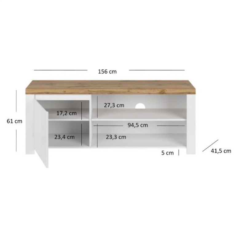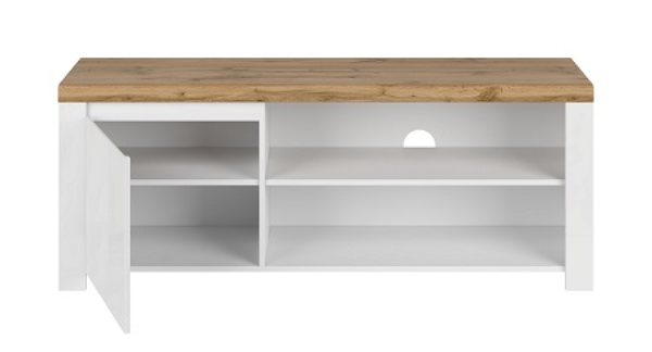 VIGO televizoriaus spintelė sukurta taip, kad tilptų televizorius dėl didelio ir patvaraus stalviršio. Šis spintelė turi atviras ir uždaras lentynas su baltais priekiais, puikiai tinkančias diskams, nuotolinio valdymo pultams ar žurnalams laikyti. Atvirose lentynose lengvai tilps priedėlis, „Wi-Fi“ maršrutizatorius ar kita televizijos įranga. Baltos spalvos ir šiltos „Wotan“ ąžuolo apdailos derinys daro šį spintelę puikiu priedu prie kitų kolekcijų baldų. VIGO televizoriaus spintelė patenkins kiekvieną modernaus stiliaus gerbėją, vertinantį paprastumą klasikinėje aplinkoje.