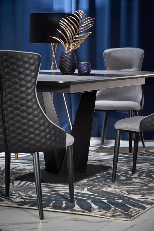 VINSTON prailginamas stalas, spalva: stalviršis – tamsiai pilka / juoda, kojos – juodos