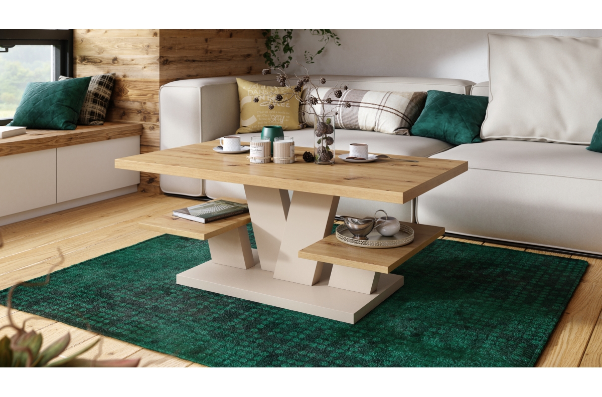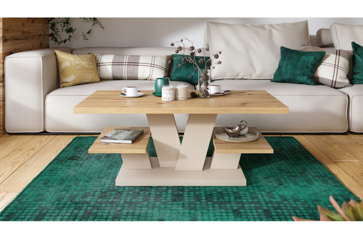 VIVA MAT Artisan Oak/Beige (Champagne) – MODERNUS KAVOS STALIUKAS SU LENTYNOMIS