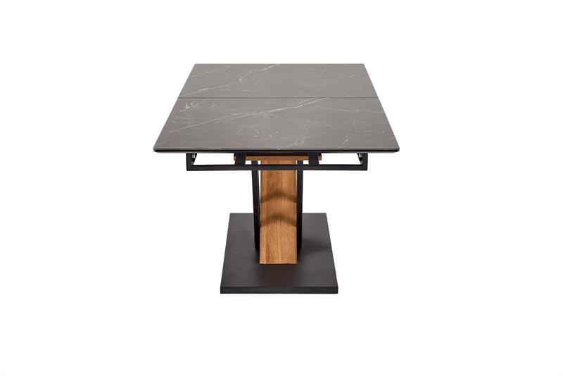 VOLANT 140 prailginamas stalas, stalviršis – juodas marmuras, kojos – auksinis ąžuolas / juoda