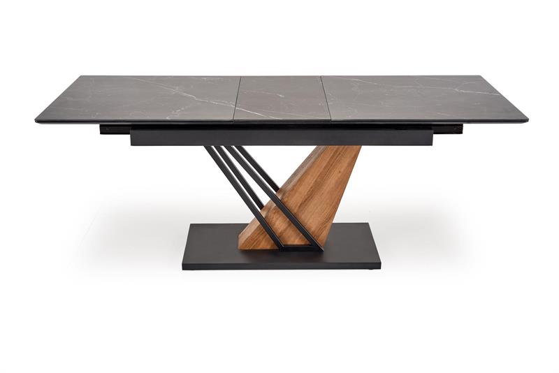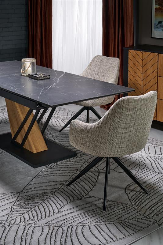 VOLANT 160 prailginamas stalas, stalviršis – juodas marmuras, kojos – auksinis ąžuolas / juoda