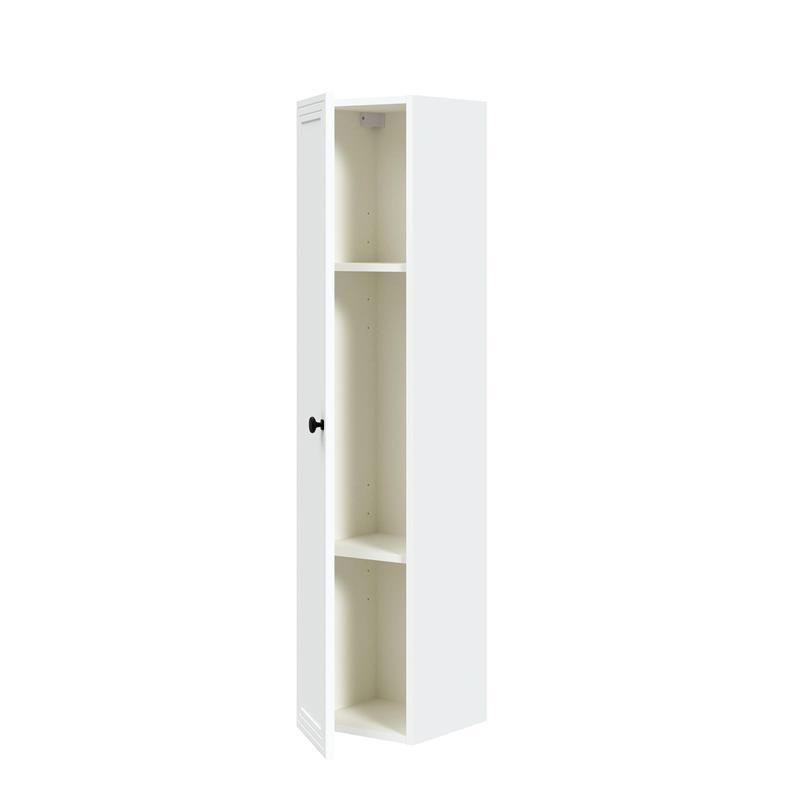 Sieninė spintelė, matmenys: 30/30/135 cm, medžiaga: korpusas – laminuota medžio drožlių plokštė, priekis – laminuota MDF, švelnaus uždarymo pakabos ir bėgeliai, spalva: balta matinė