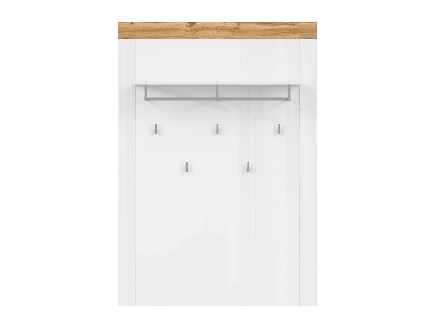 „Holten“ paltų kabykla – tvarka ir stilius prieškambaryje. Prieškambaris yra kiekvienų namų vitrina, todėl verta pasirūpinti jo funkcionalumu ir išvaizda. „Holten“ kolekcija siūlo modernius sprendimus, kurie padės sutvarkyti prieškambario erdvę, išlaikant stilių ir tvarką. „Holten“ paltų kabykla yra ne tik funkcionalus elementas, bet ir dekoratyvinis akcentas prieškambaryje. Ši paltų kabykla buvo sukurta viršutiniams drabužiams ir aksesuarams tvarkingai susidėti. Joje yra penki paprasti kabliukai ir pakabos bėgelis, leidžiantys laikyti vaikų striukes ir paltus. Be to, viršutinė lentyna yra puiki vieta kepurėms, pirštinėms ir kitiems smulkiems aksesuarams. Paltų kabyklos plokštė apdailinta „Waterford Oak“ mediena, o matomas raštas suteikia jai unikalų charakterį ir natūralų žavesį. Dėl skirtingų medžiagų, naudojamų lentjuostėms, raštas gali šiek tiek skirtis, suteikdamas baldui unikalaus charakterio. Verta atkreipti dėmesį į šonines lentjuostes, kurios sukuria unikalų rėmą pakabinimo daliai ir suteikia unikalų dizaino akcentą. „Holten“ paltų kabykla puikiai dera su kitais kolekcijos elementais, tokiais kaip batų spintelė ar kiti prieškambario baldai. Galite sukurti darnią ir funkcionalią erdvę, kuri palengvins jūsų drabužių ir aksesuarų tvarkymą kiekvieną dieną. Šis paltų kabyklos modelis yra dviejų spalvų: balta / Wotan ąžuolas / blizgi balta ir Waterford ąžuolas. Tai leidžia jį priderinti prie jūsų asmeninio stiliaus ir prieškambario dekoro. „Holten“ paltų kabykla yra ne tik praktiškas sprendimas, bet ir elegantiškas elementas, suteikiantis jūsų prieškambario erdvei charakterio ir estetikos.