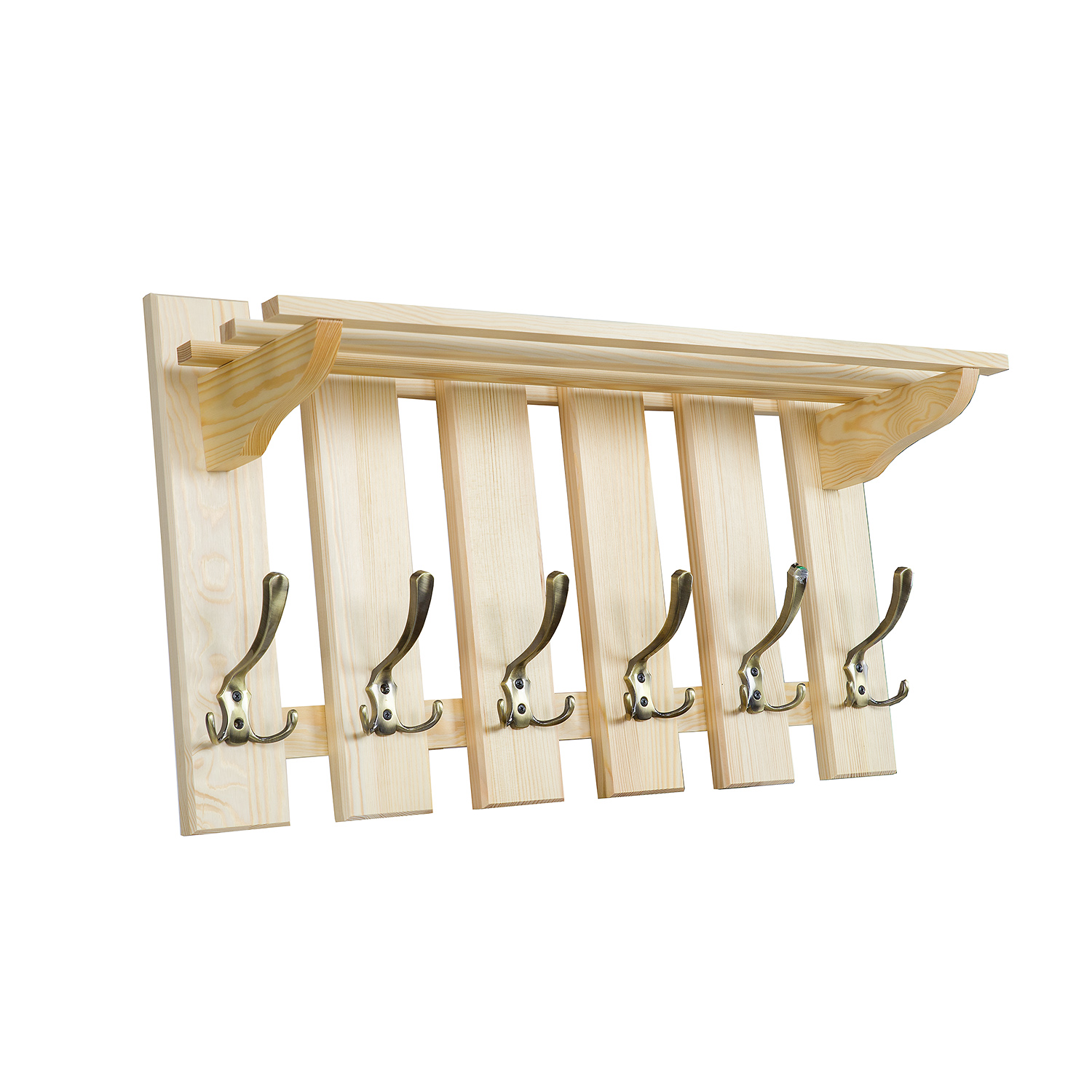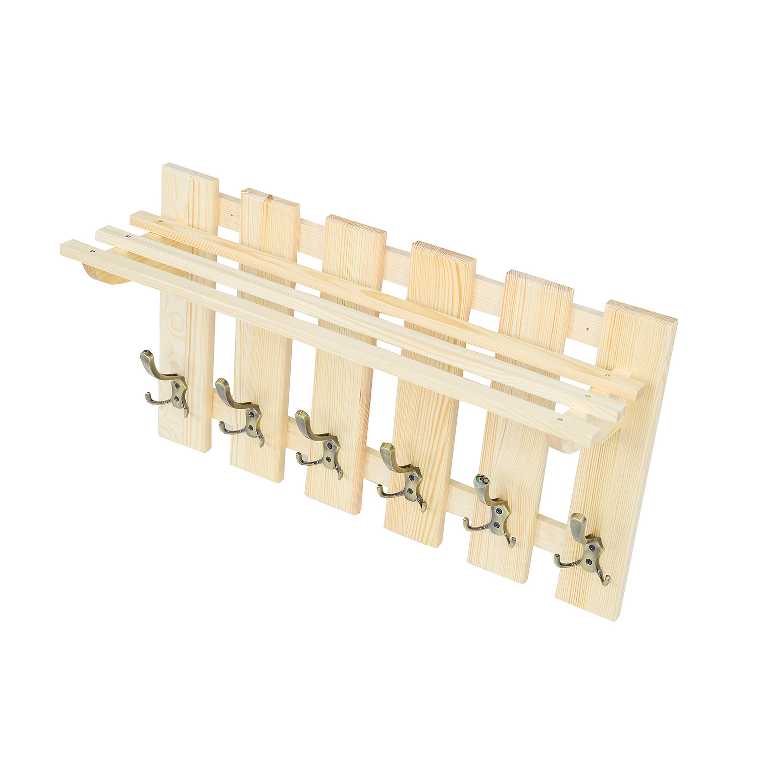 Medinis ir funkcionalus sieninis drabužių kabykla WS108 prieškambariui pagamintas iš masyvios pušies medienos. Jis turi metalinius kabliukus drabužiams ir nedidelę lentynėlę. Jis puikiai dera klasikiniame, tradiciniame interjere.