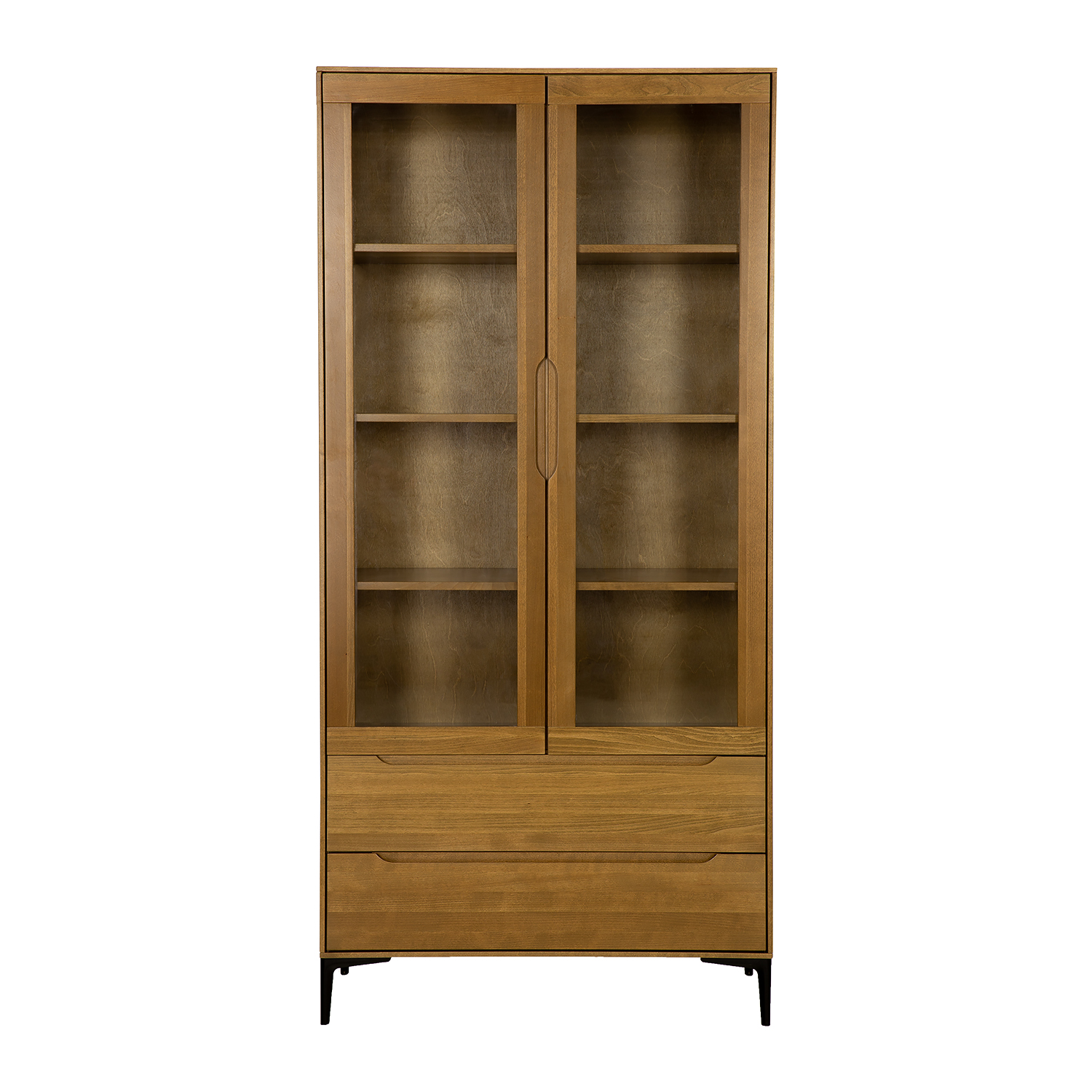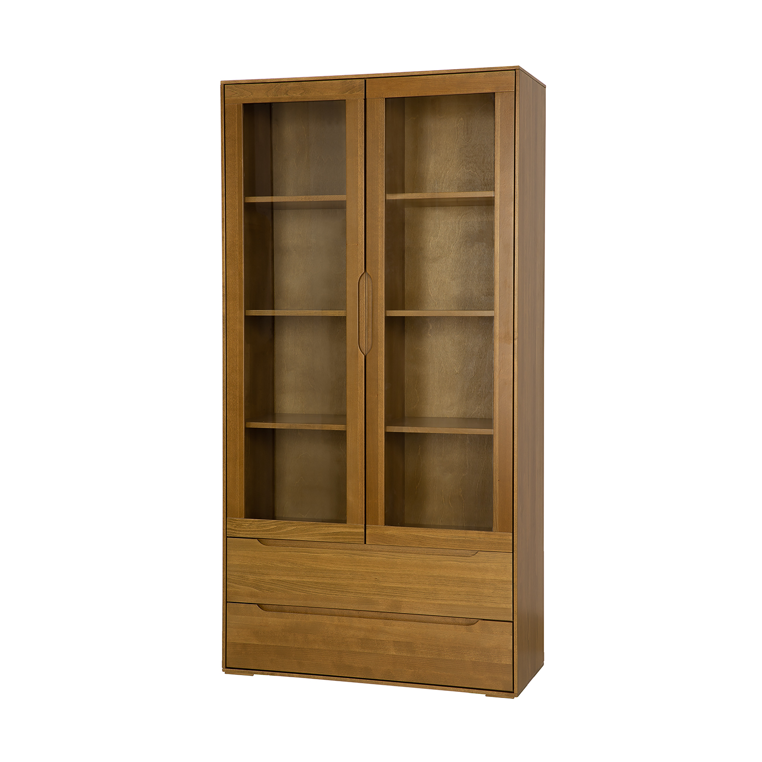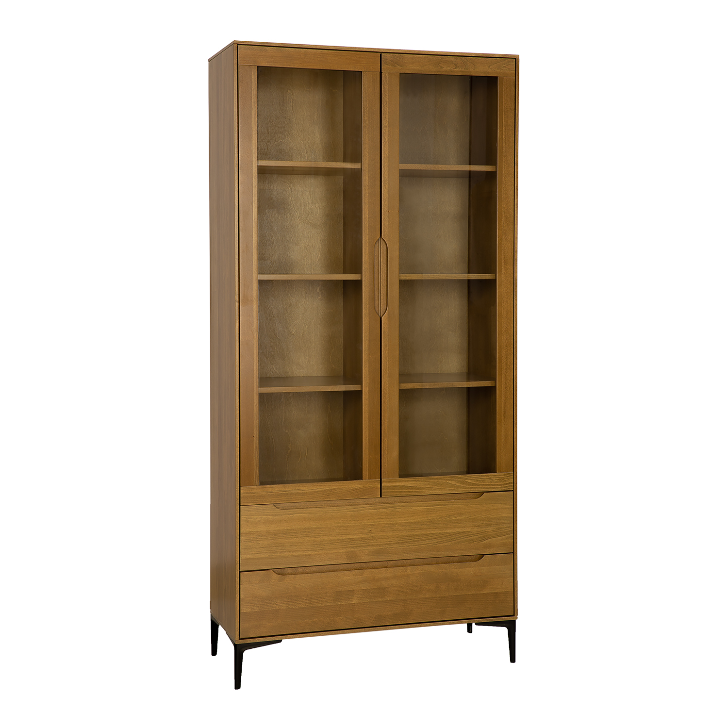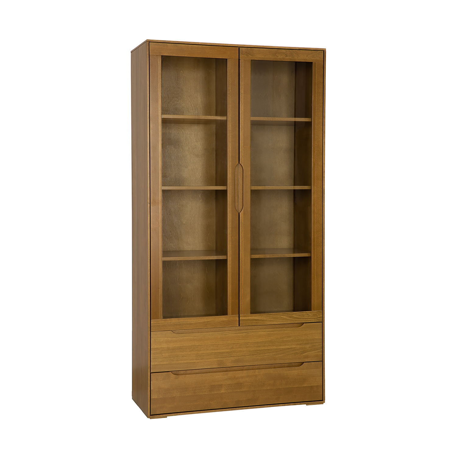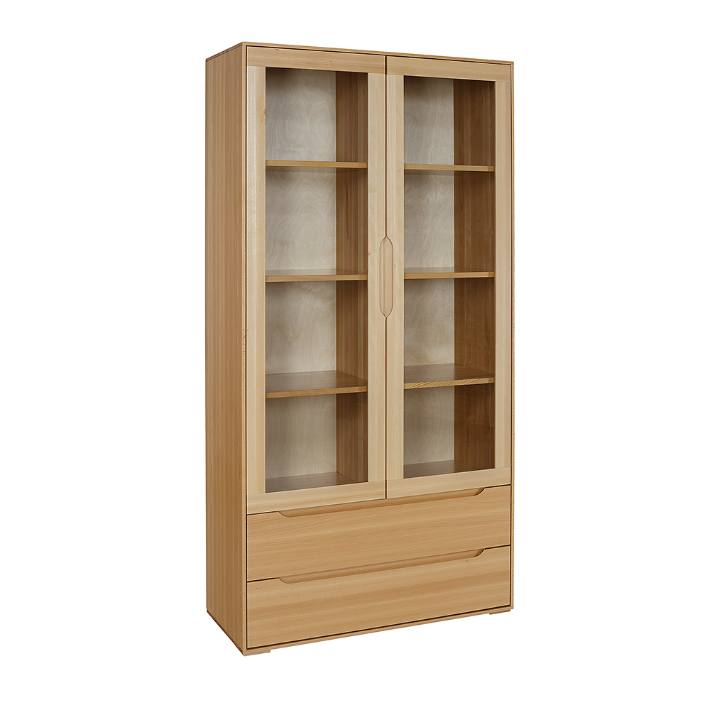 Buko medienos vitrina KW421 buvo sukurta galvojant apie modernaus minimalizmo mėgėjus. Šis baldas derina eleganciją su moderniu dizainu ir funkcionalumu. Natūrali buko mediena suteikia žavesio, sukurdama šiltą ir jaukią atmosferą bet kuriame interjere, kuriame ji bus eksponuojama. Gražūs stikliniai fasadai ne tik puošia, bet ir leidžia eksponuoti šeimos nuotraukas ar suvenyrus. Erdvūs stalčiai, esantys tiesiai virš grindų, suteikia praktišką vietą namų niekučiams. Vitrina sumontuota ant medinių kojelių. Papildomai galima įsigyti 10 cm aukščio aliuminio kojeles (NG002) ir 15 cm aukščio metalines kojeles (NG003). Tai leidžia lengvai ir visiškai pakeisti baldo charakterį ir stilių.