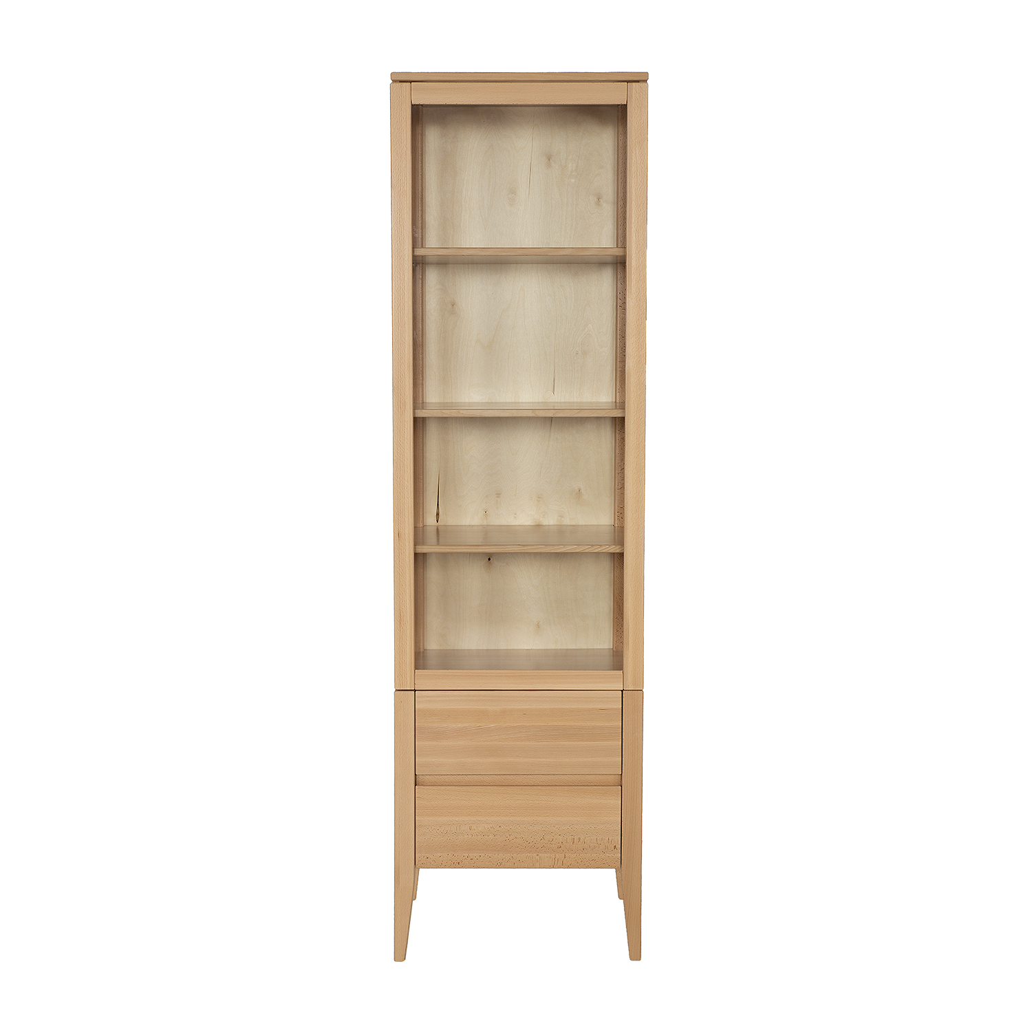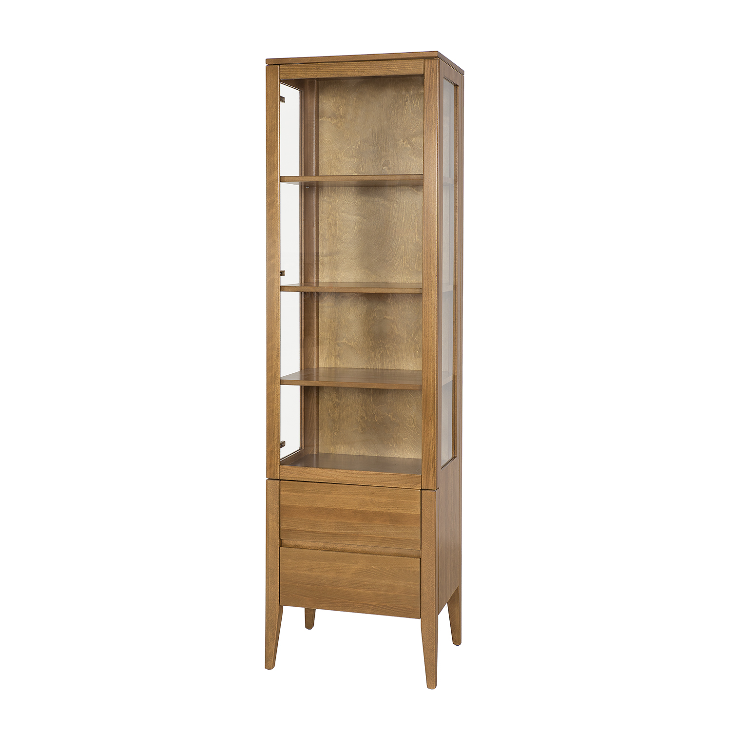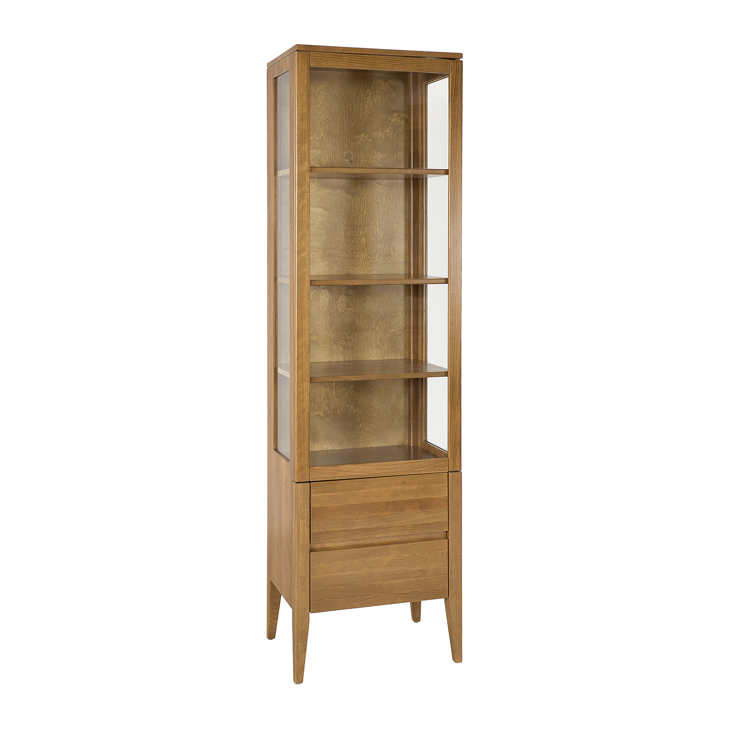 Buko medienos vitrina KW438 – tai naujas „Retro“ kolekcijos papildymas, pagamintas iš buko medienos. Klasikinė jos išvaizda puikiai tiks tiek tradiciniame, tiek moderniame interjere. Dydis yra pagrindinis privalumas, leidžiantis jai papildyti net mažą svetainę ar valgomąjį. Lentynos už stiklinės plokštės leidžia eksponuoti suvenyrus, papuošalus ar gražius indus. Apatiniai stalčiai yra naudingi smulkiems daiktams laikyti. Natūrali spintelės spalva leis sukurti unikalią, jaukią atmosferą valgomajame ar svetainėje.