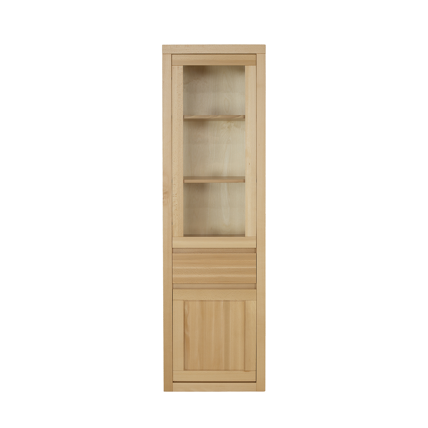 VIP KW406 dešinės pusės buko medienos vitrina – tai elegantiškas baldas, pagamintas iš tvirtos buko medienos, derinantis natūralų grožį su išskirtiniu patvarumu. Stikliniai fasadai ir šonai idealiai tinka porcelianui, stiklo dirbiniams, knygoms ar šeimos relikvijoms eksponuoti. Apatinė dalis su tvirtomis durelėmis suteikia papildomos vietos daiktams laikyti. Paprastas dizainas ir kruopšti apdaila puikiai dera tiek su klasikiniu, tiek su moderniu interjeru, suteikdama lengvumo ir elegancijos.